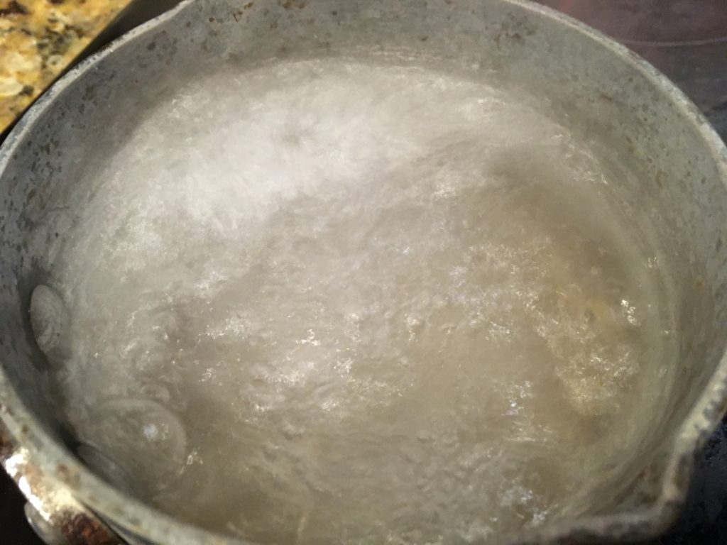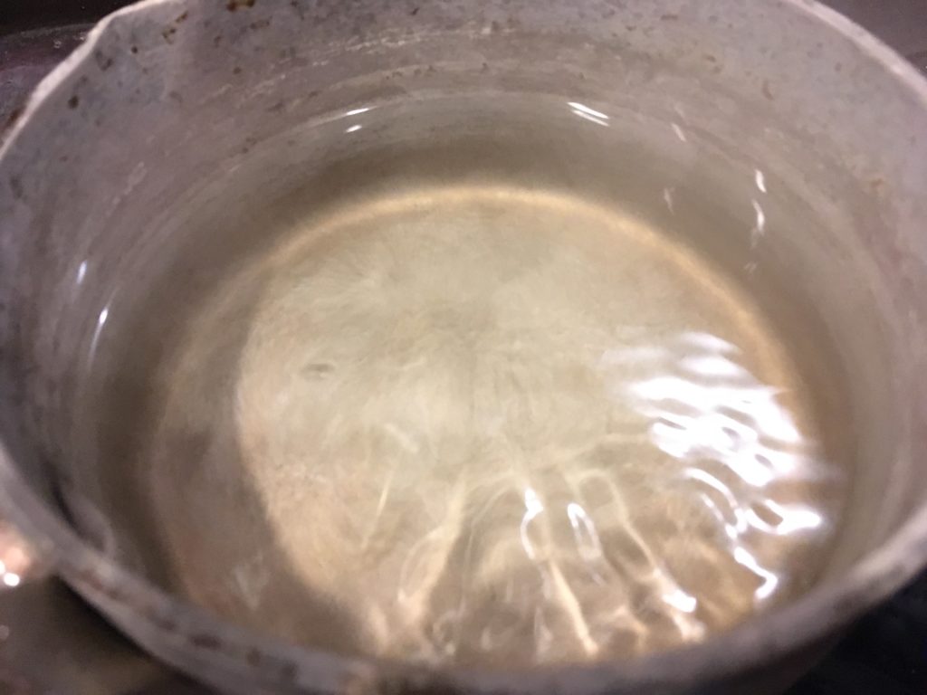 火を止めて、水をかき混ぜる。私は時計回りだ。人によっては反時計回りの左利きとかいるかも知れないが、おそらく味には関係ない。