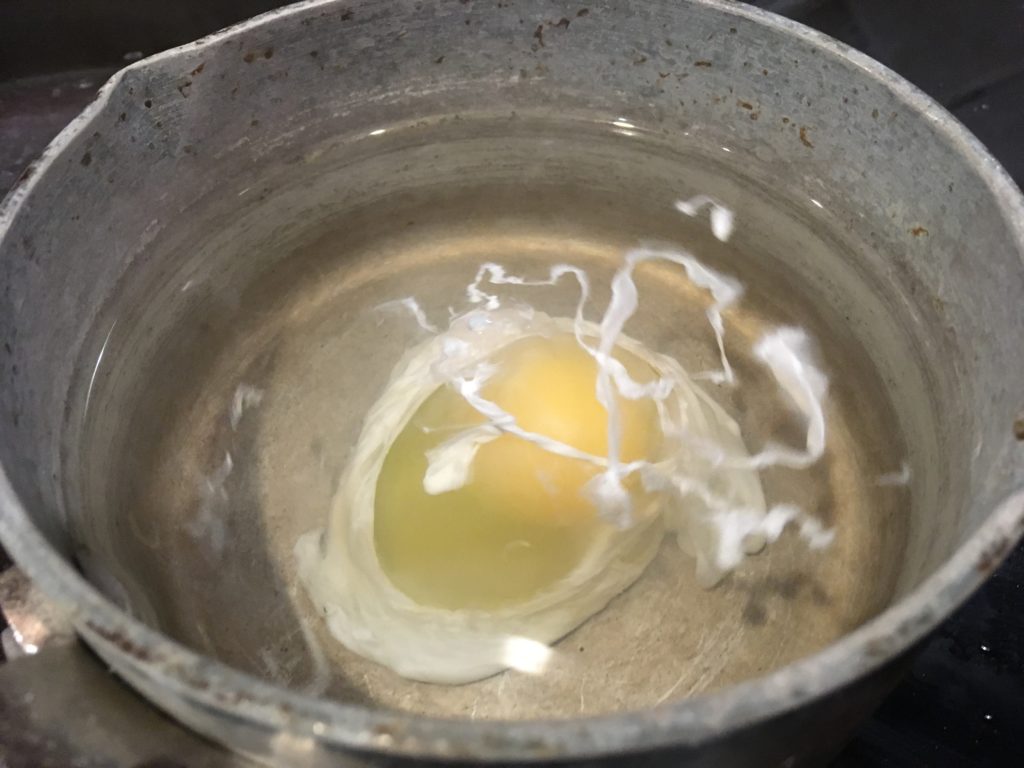 ここに卵を落とす。割ってからだぞ。