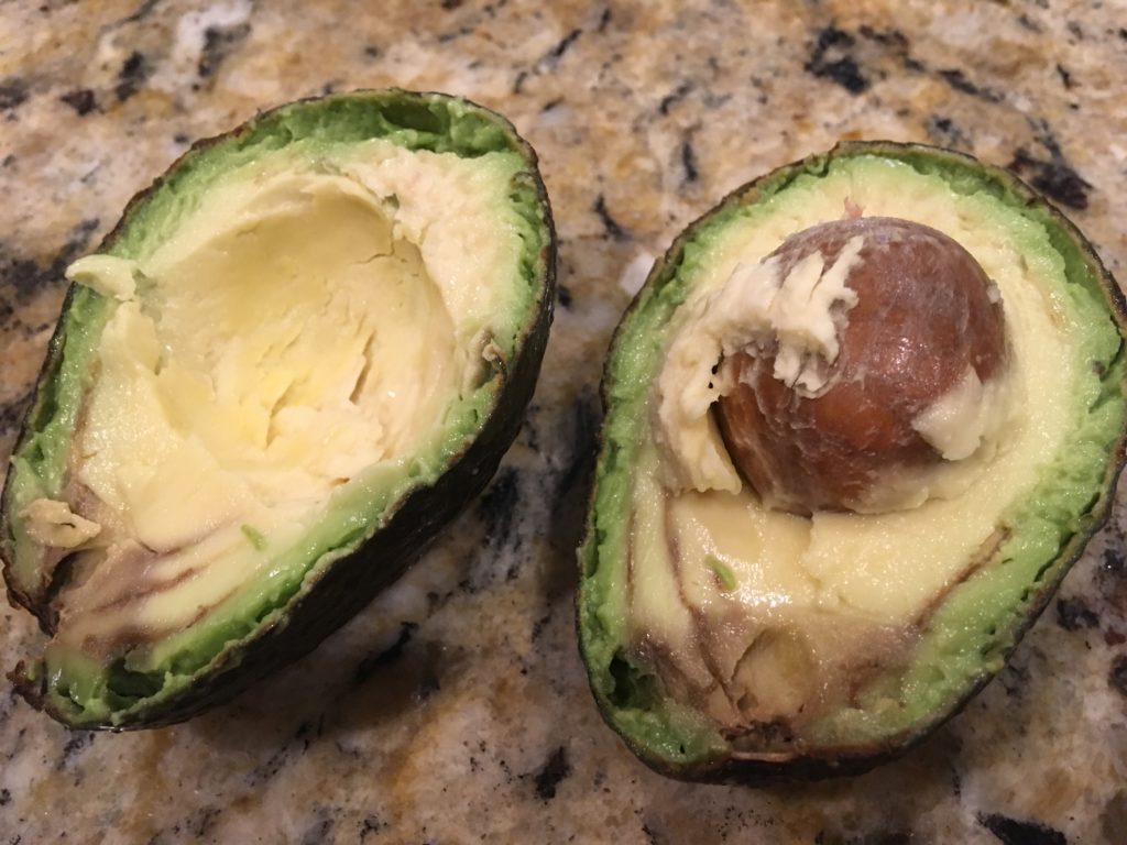 本日のアボカド、たべ頃の「みかんの硬さ」の割には熟成が進んでいる。味に影響があるレベルではないけど。