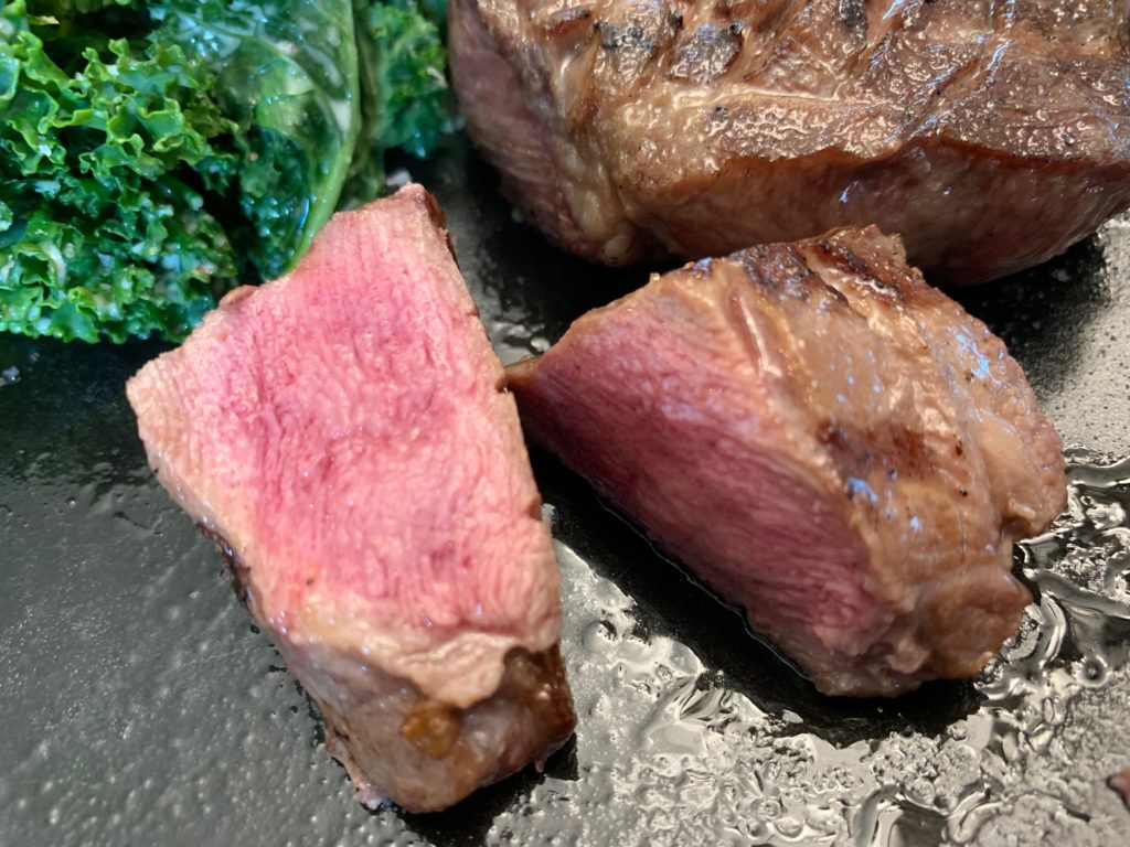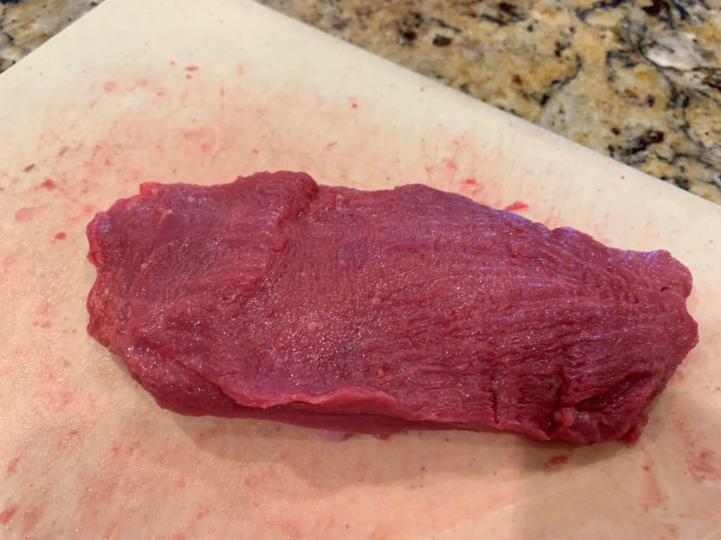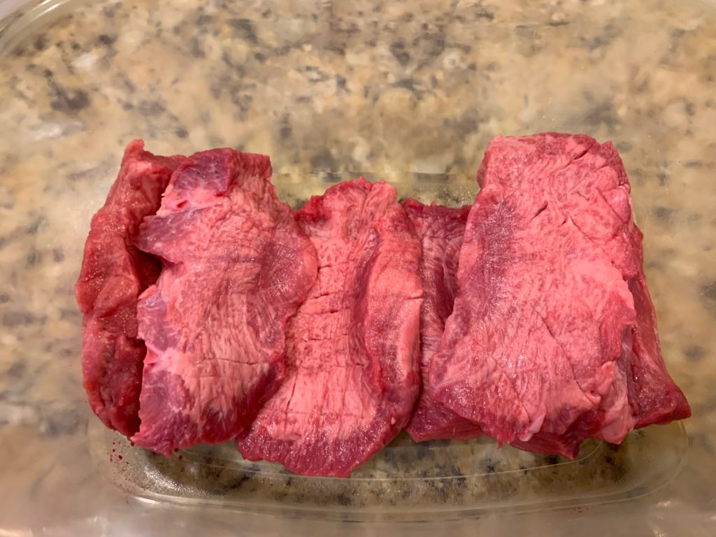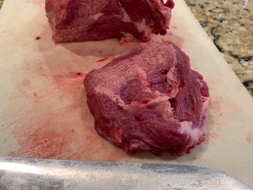 これをスライス(っつってもビンボー薄切り肉にするつもりはない)してく。ステーキの厚さで。