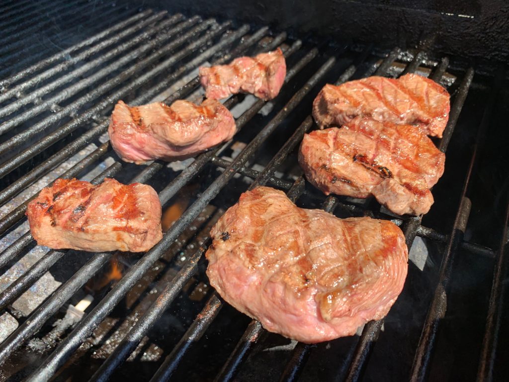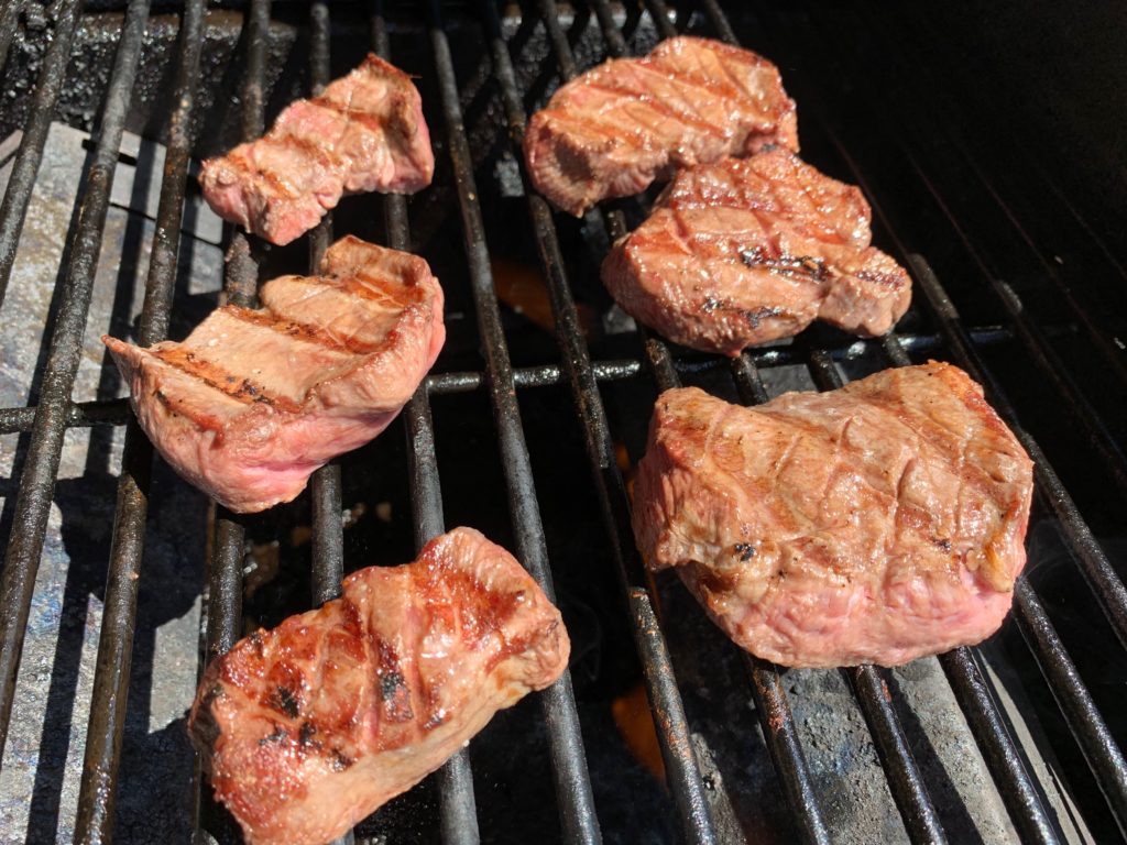 舌先をまず焼いて、焼いてから小さく切ってお子様に。