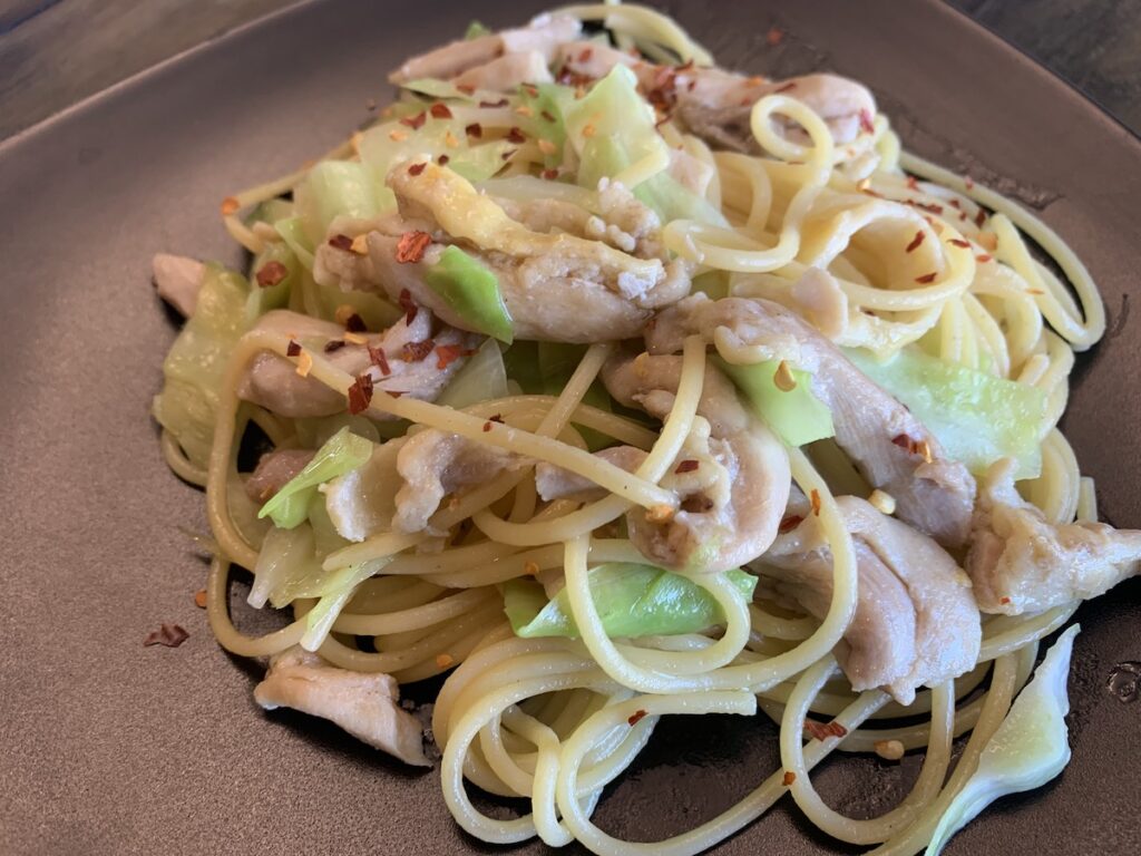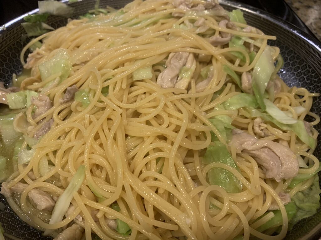 パスタを茹でながら、炒めるのはテキトーで良い。