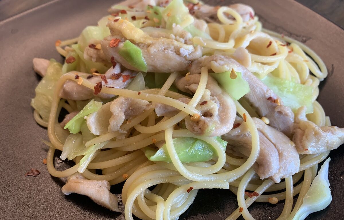 パスタを茹でながら、炒めるのはテキトーで良い。