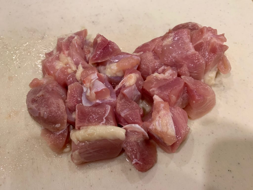 切りました。小さく切ったほうが表面積が上がって味は絡むけど、肉が小さいとカレーとしての価値は下がる。