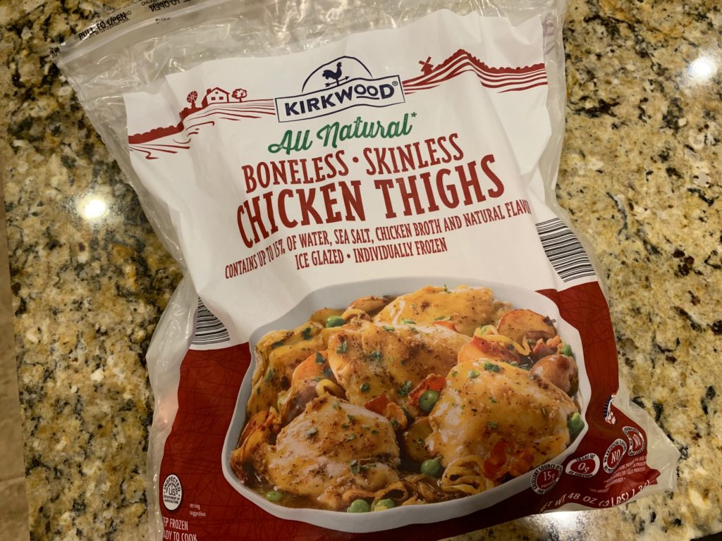 鶏モモ骨皮なしが 3lb (1.36kg) 入りの冷凍バッグ。我が家の重要な固定資産である。