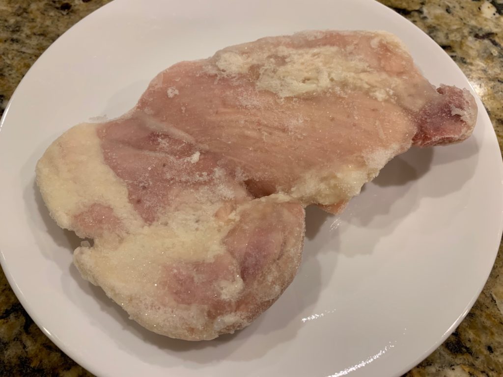 さて、冷凍庫から取り出したばかりの新鮮な冷凍チキン。