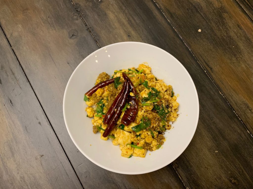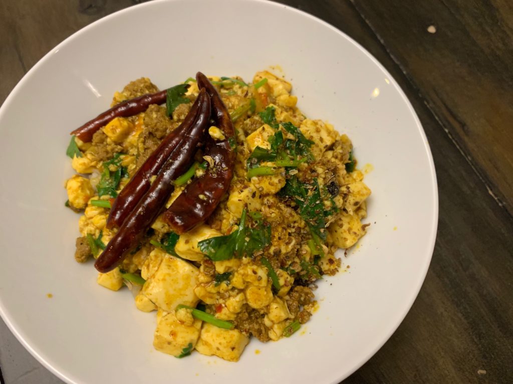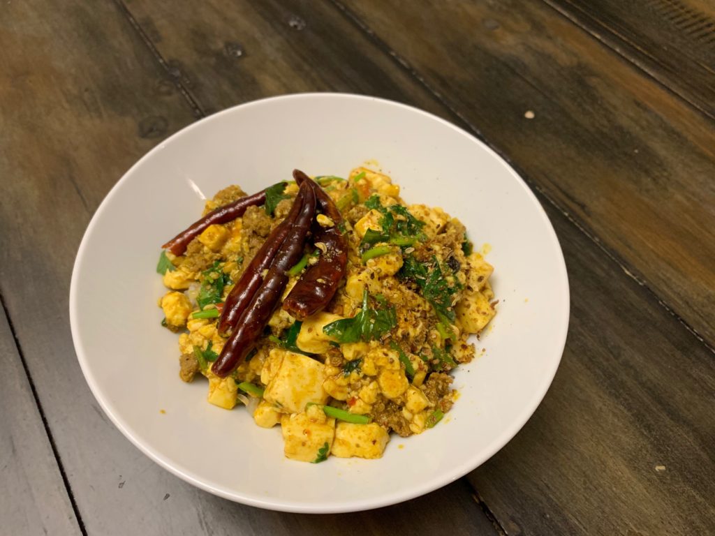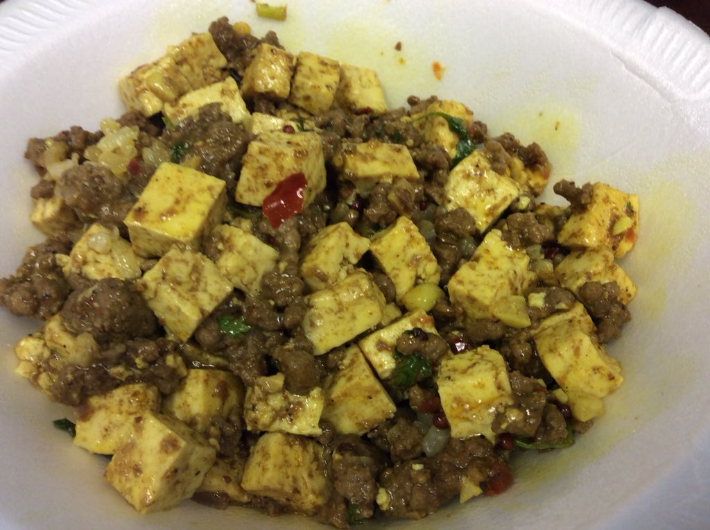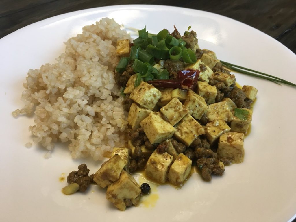 あとは肉を炒めて豆腐を炒めて豆板醤と醤油で仕上げ。