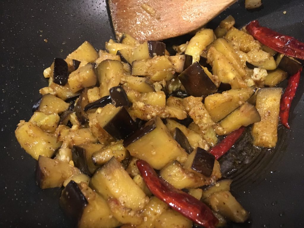 しっかり火を通すと、一旦染みた油がにじみ出てくる。見た目もナスの美味しそうな感じが。そもそも、茄子が美味しいのではなく、茄子に染みた油が美味しいだけだ。フライドポテトの芋みたいなもん。あきらめよう。