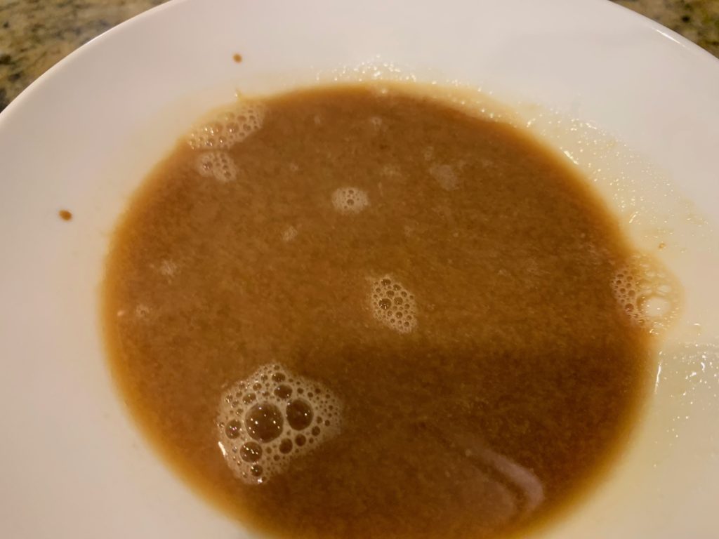 カエシ。甜麺醤と醤油。ガーリックパウダーもたっぷり足した。レンチン10秒。