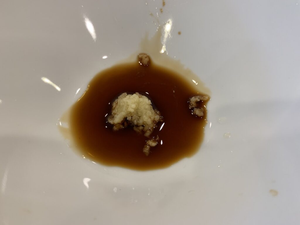 丼にニンニク。パウダーでもいいはず。たっぷりと。十分に入れることが大事。