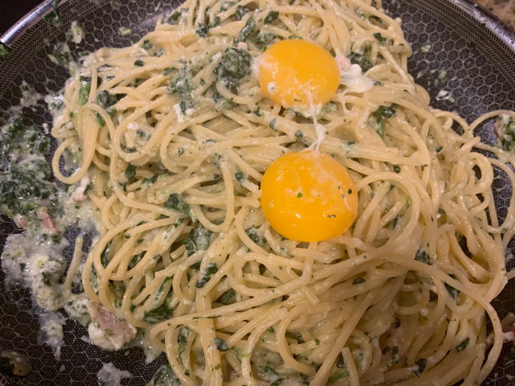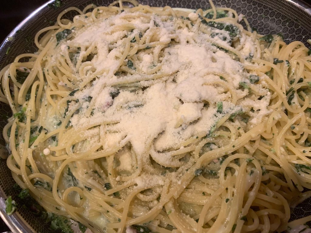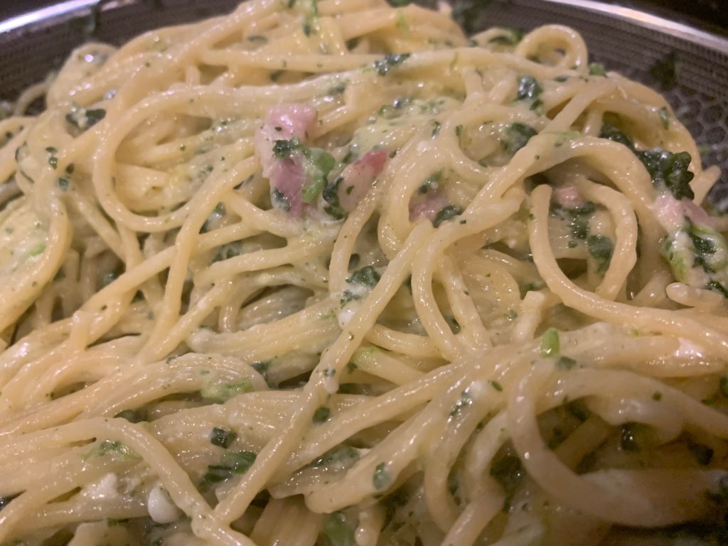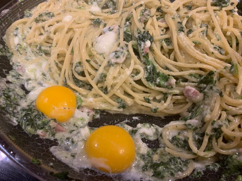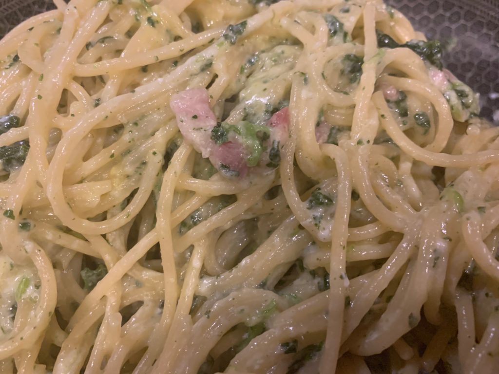 実際今日のこれ、名作・ほうれん草パスタとほぼ同じだけど役者変えて作り直した程度だけど、食べた感じはだいぶ違うたぶん。