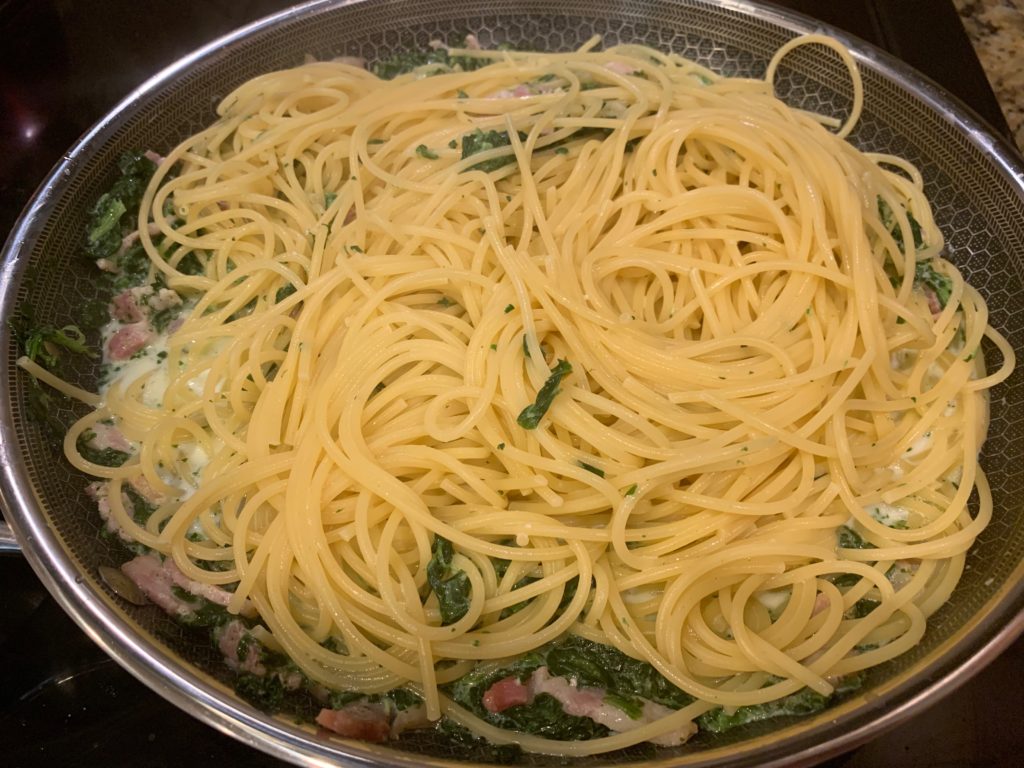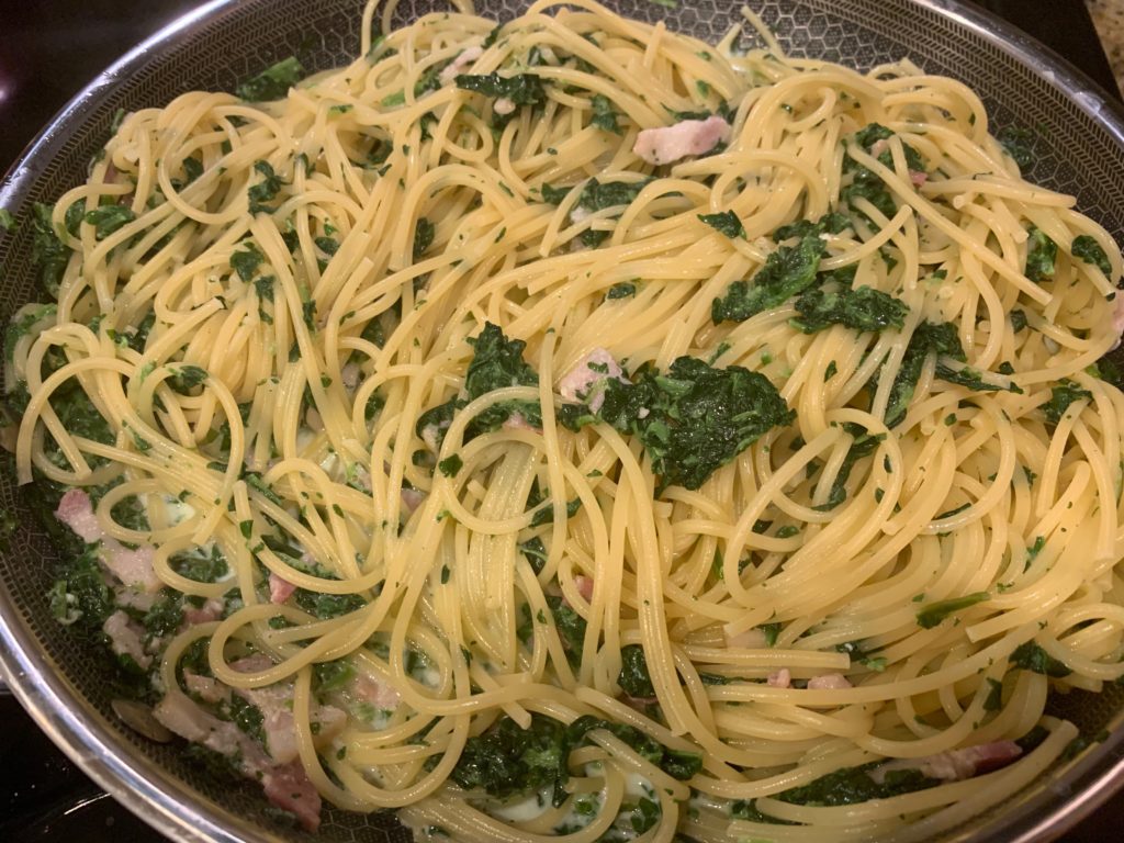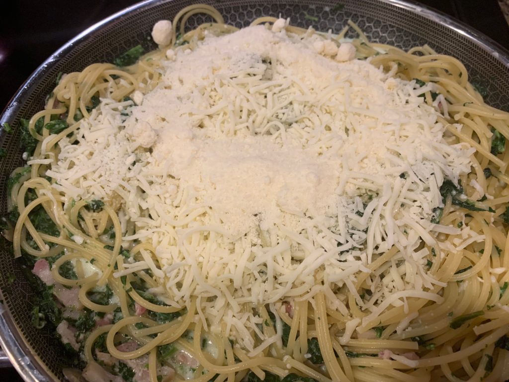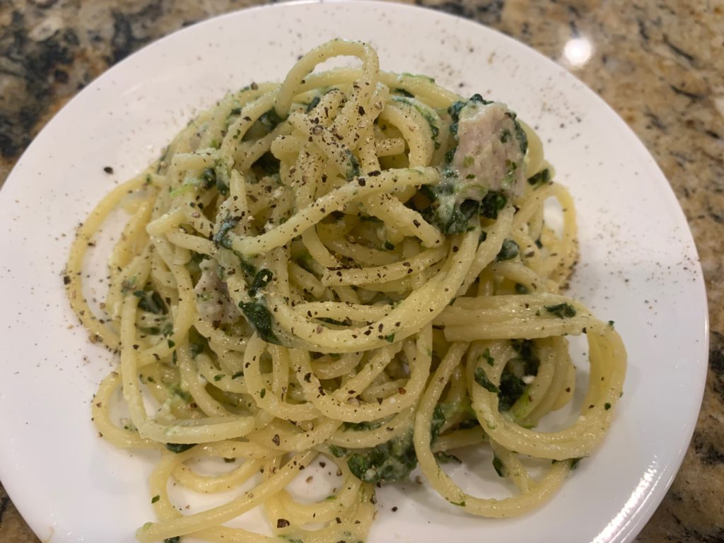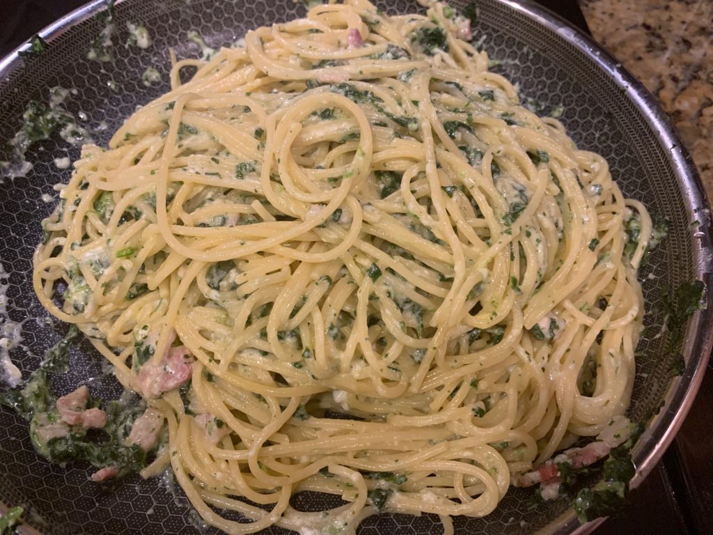 実際今日のこれ、名作・ほうれん草パスタとほぼ同じだけど役者変えて作り直した程度だけど、食べた感じはだいぶ違うたぶん。
