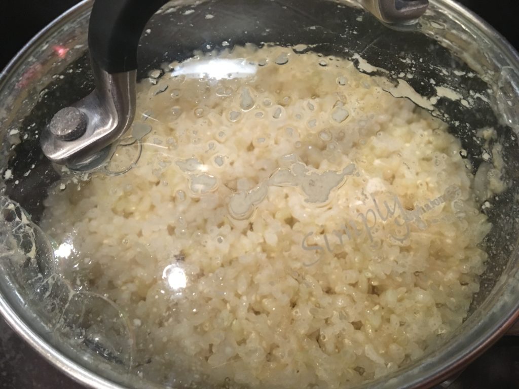 水分が飛んだら火を止めて蒸らす。10分程度。