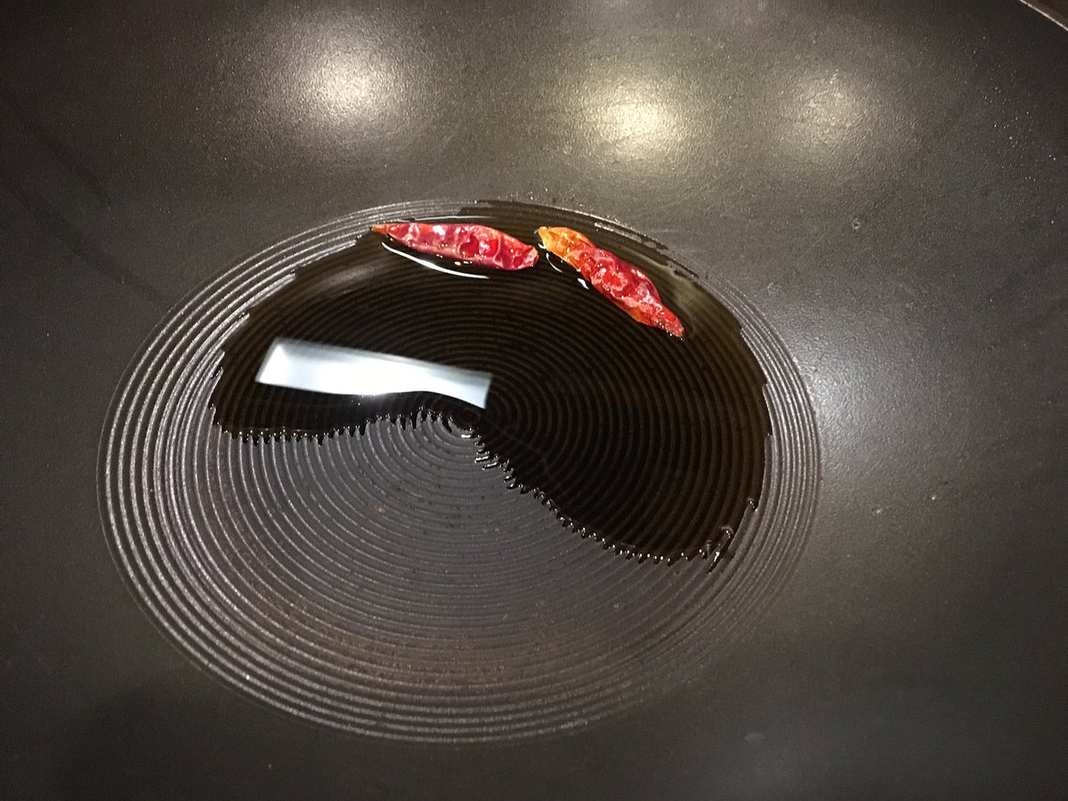 ニンニクまたは唐辛子または両方がオススメ。唐辛子、丸ごと入れて、齧らなければそんな辛くないにもかかわらず、なんかヤバい旨味が出る。それ以上に、炒め物に加える赤色のアクセントが異常に便利。炒める前、フライパンに唐辛子またはニンニクまたは両方に油をかけてから火にかける。ただそれだけ。煙が出るくらいまで待てばよいのだ。