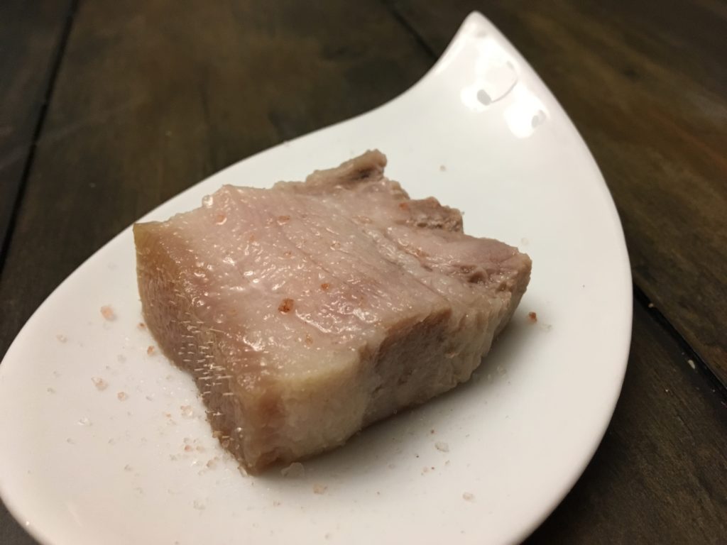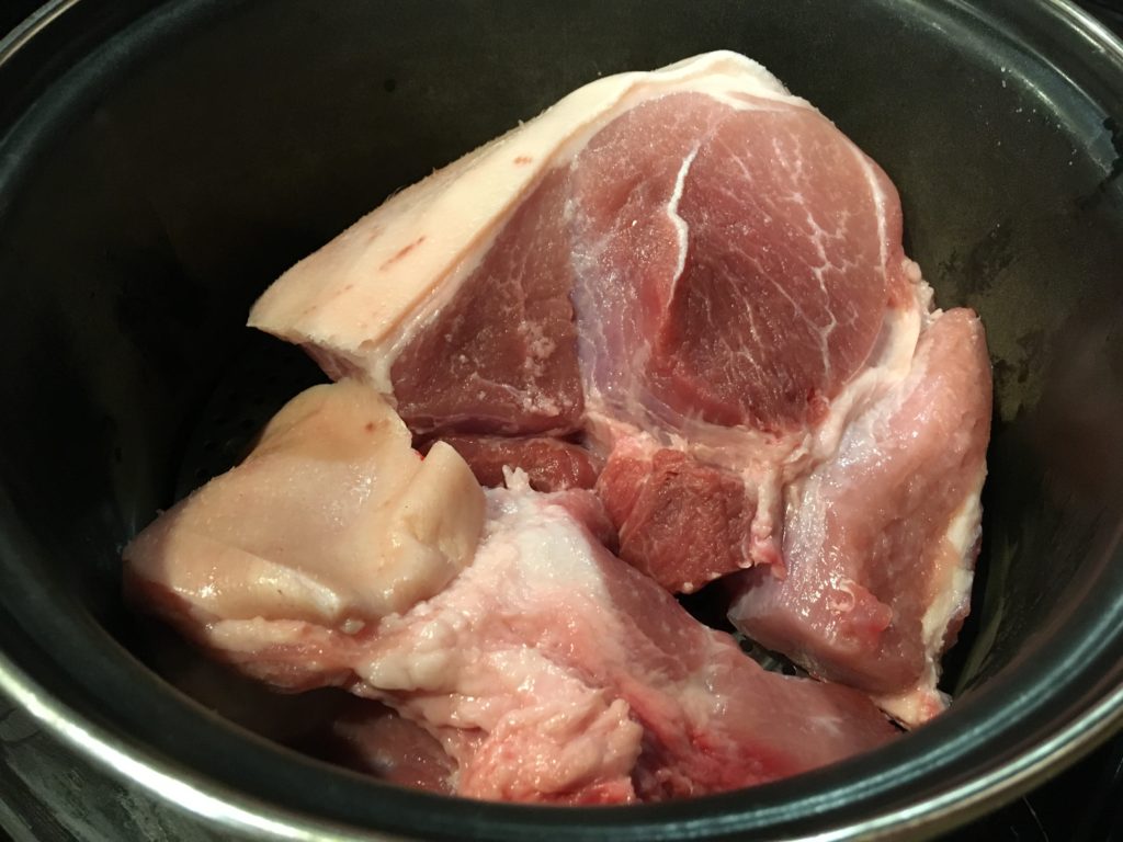 1.8キロはでかすぎるし、骨の周りだけ取り除いて今度とんこつラーメン作る時用に。塩ぶっかけて、なるべく大きいまま蒸す。