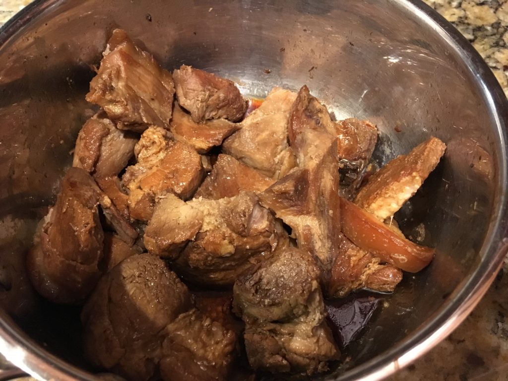 で、朝まで放置してタレを絡めるとこんな感じ。