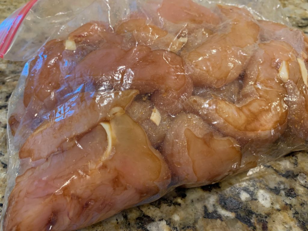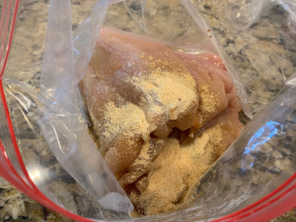 ジップロックバッグに入れて、砂糖と醤油とガーリックパウダー。