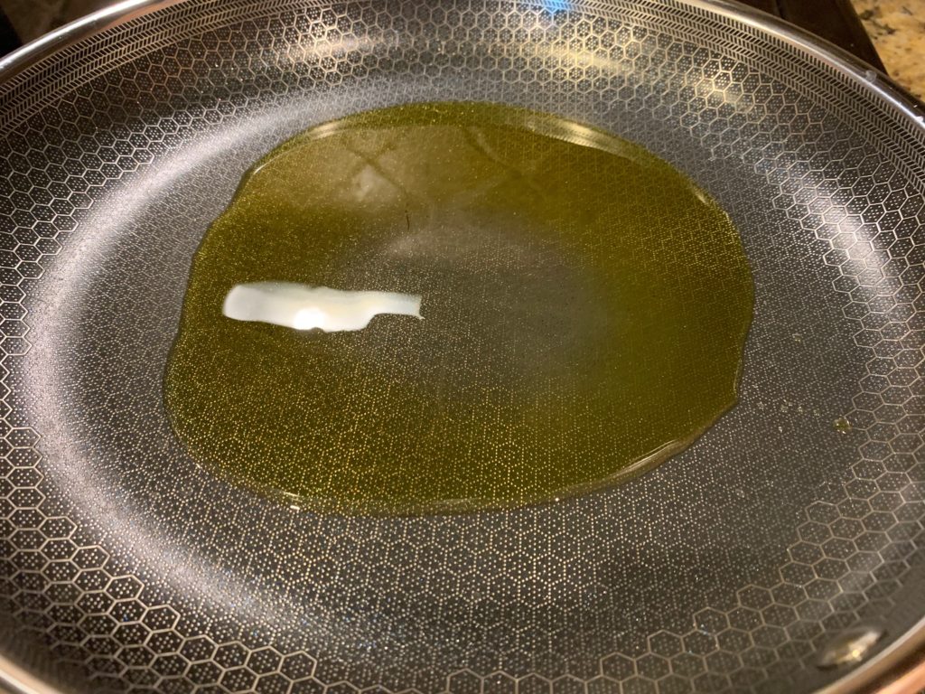 フライパンに死ににくい油。そんなに多くなくて良い。