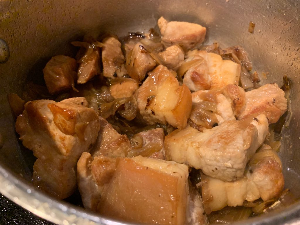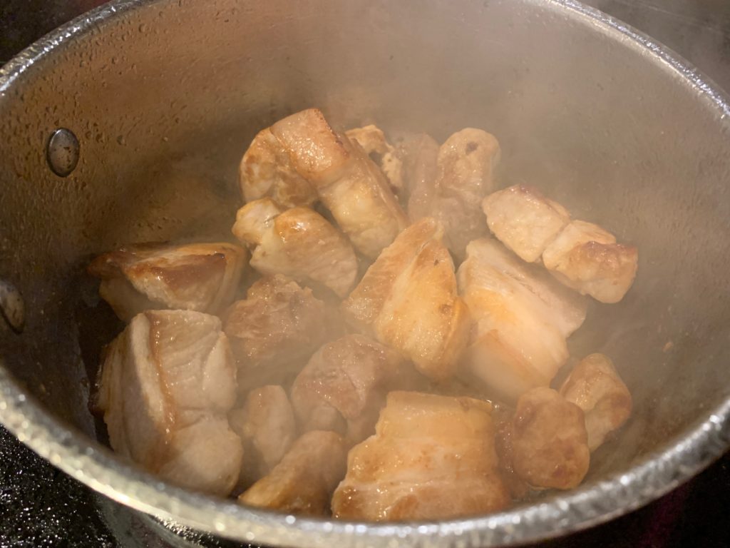 油を敷いて肉を焼く。今日は豚肉。鶏とか牛でも美味い。なぜなら肉は美味いからだ。(ビーフ版はこちら)