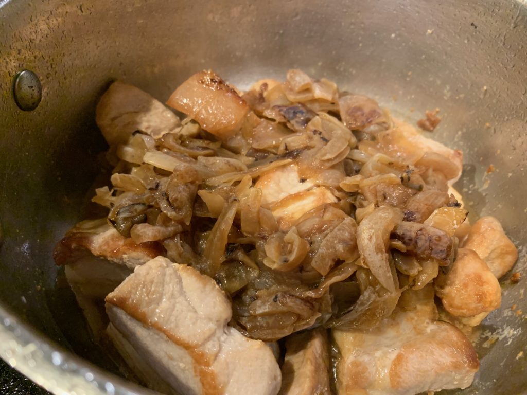 前もってキャラメリゼしておいたタマネギ。タマネギは重要な調味料であって、草とか根っこ扱いすべきでない。タマネギ無しで牛丼作ったら全然美味しくなかった。