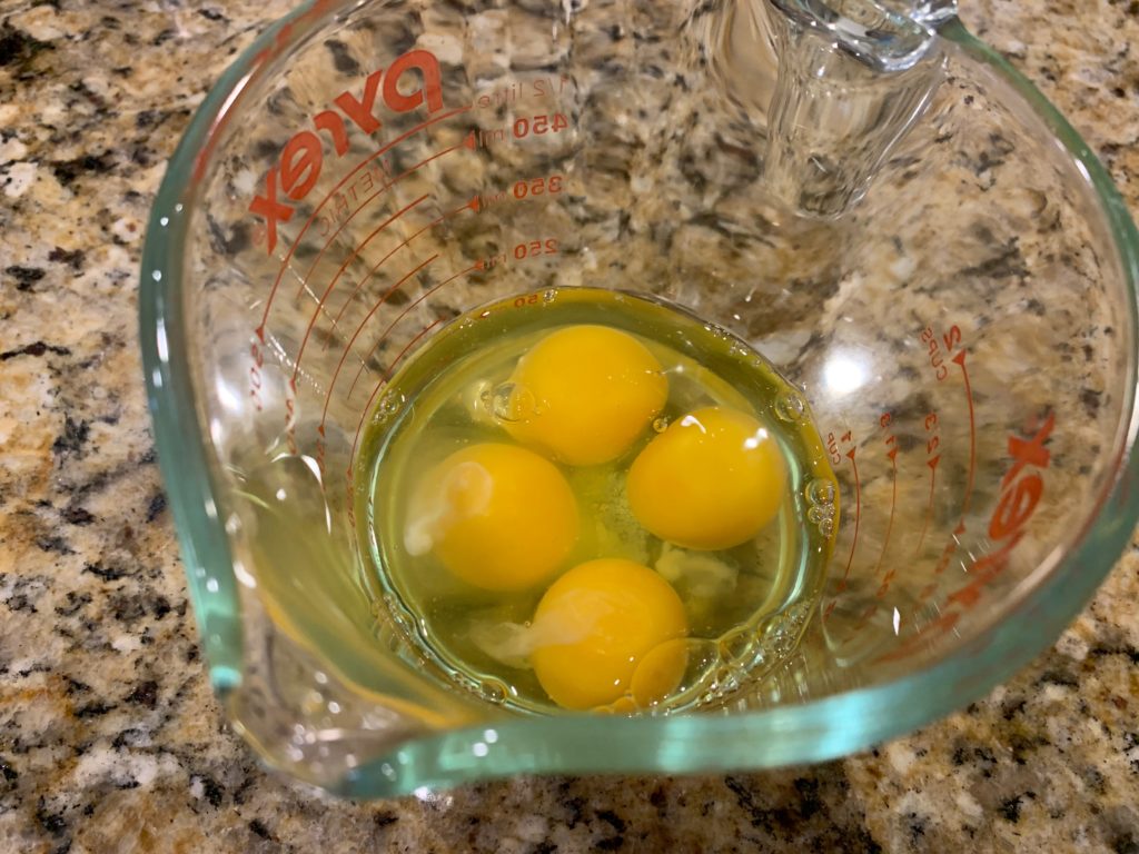 まずは卵を。塩たっぷり入れて混ぜてから卵焼きに。
