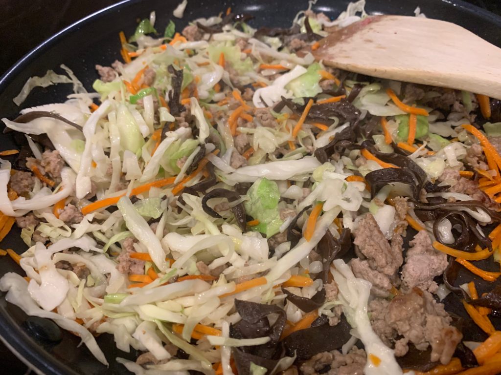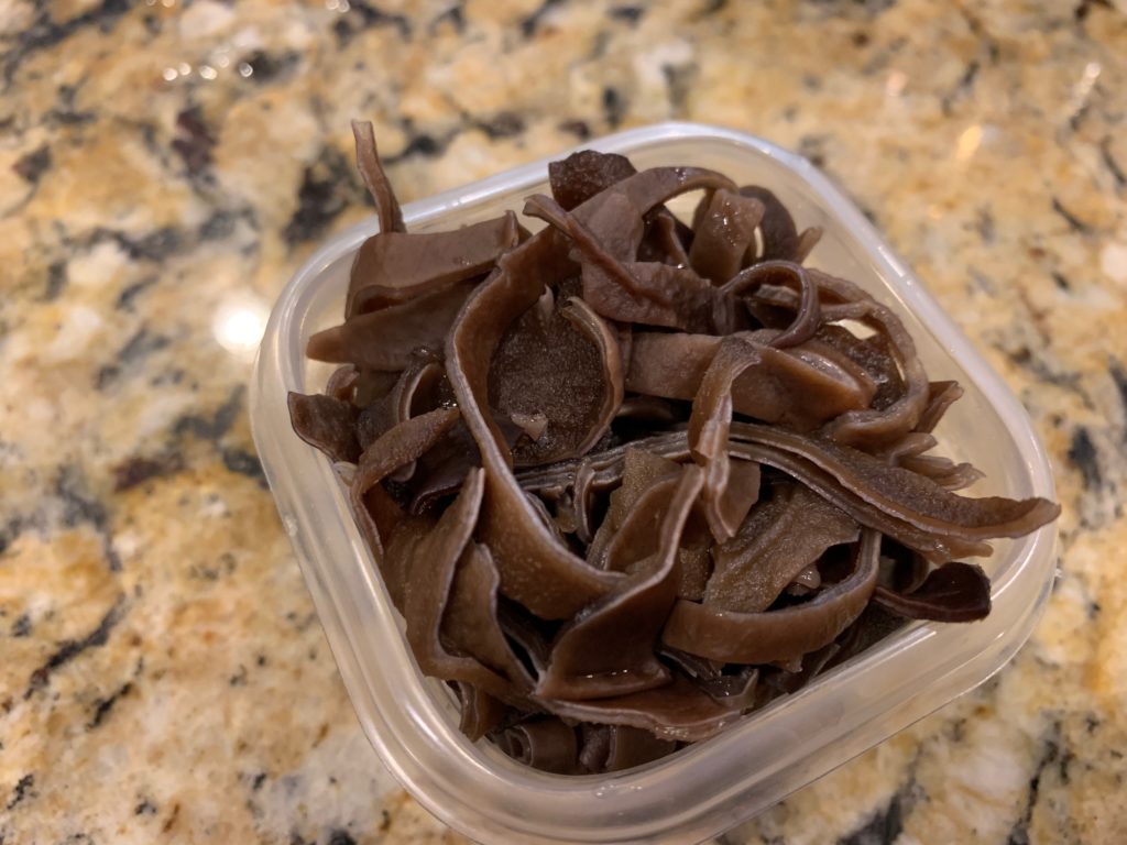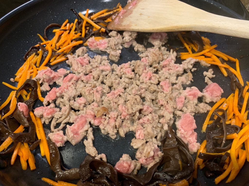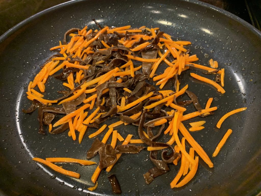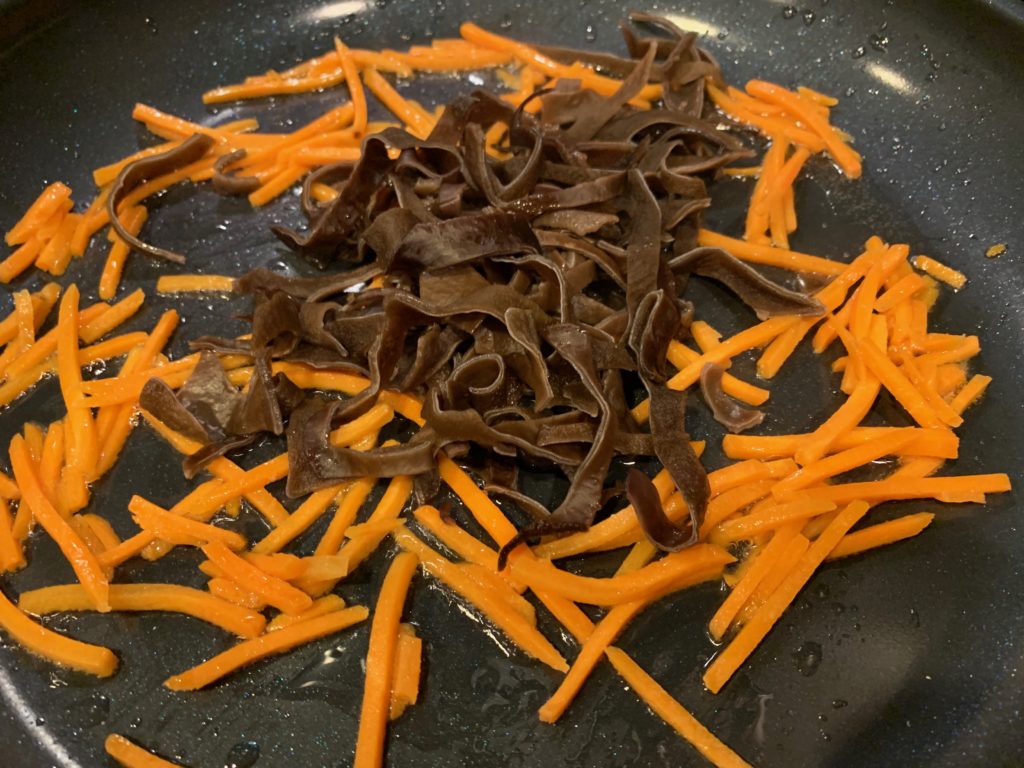 冷凍庫に水で戻して茹でて刻んだキクラゲあったからそれも。絶対必要とは思えない。どっちにしろこれ以外に包丁使ってないw