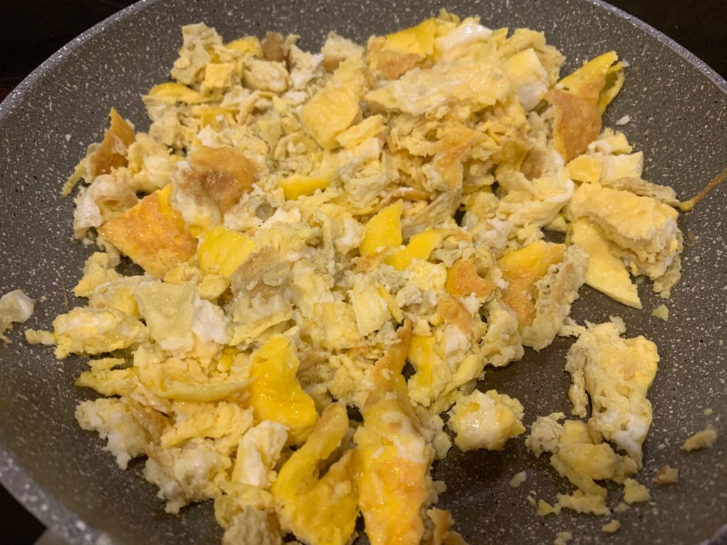 しゃもじで粉砕。卵焼きにすると、このパリッと焼けた感じが全体に広がってすごい。ビーフンには特に合う。