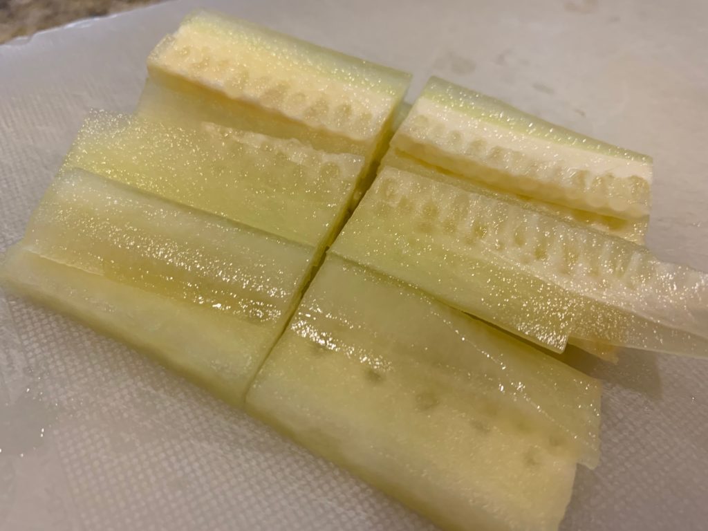 冷蔵庫に心肺停止状態で見つかったキュウリ。捨てるくらいなら使えということで。