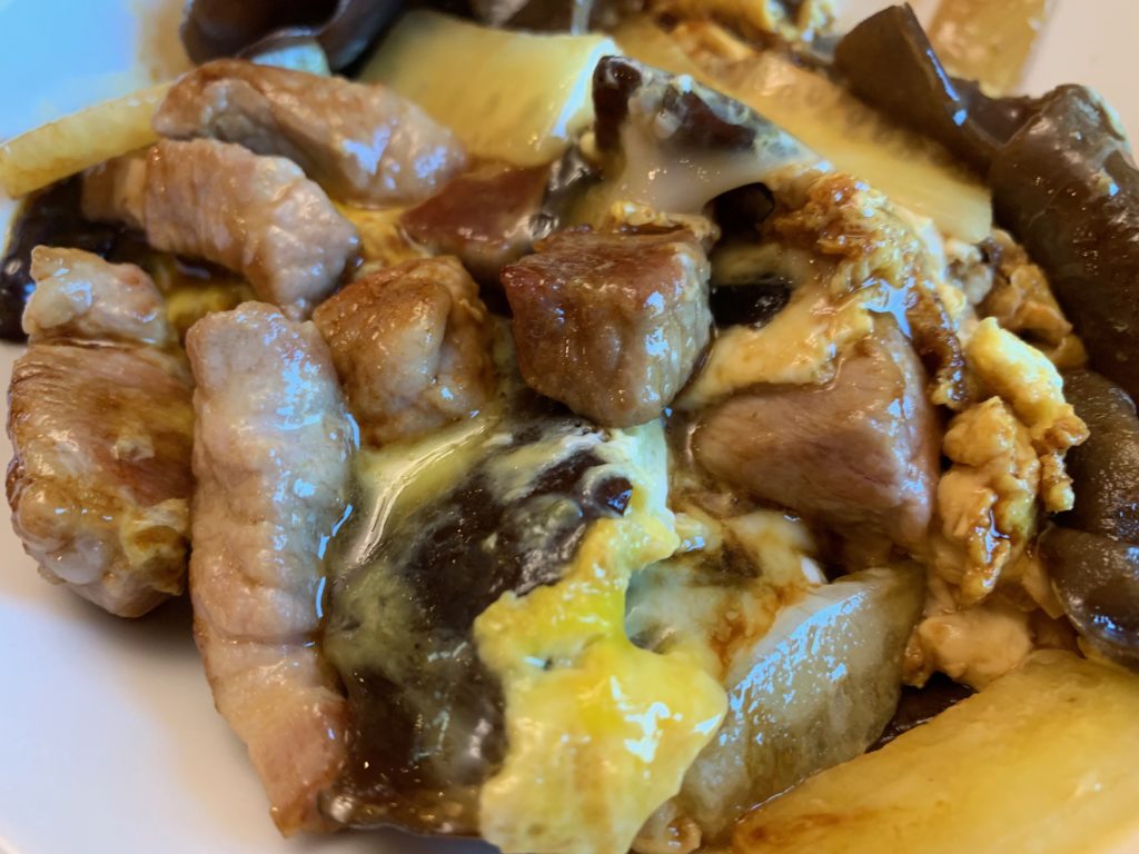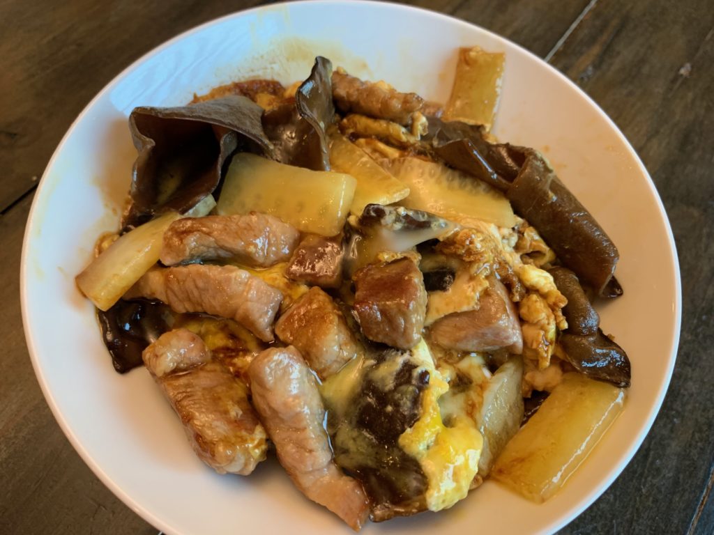 今日はレタスしかなかったのでレタス入れたけど、キュウリとかのほうが雰囲気出るよな。ぱぱっと炒めて最後に甜麺醤とコンソメぶっかけてもう一度混ぜたら溶き卵ぶっかけて固まるまで待つ。卵を入れたらあまり動かさないこと。それだけ。卵を入れるのは日本のやつっぽい感じがする。子供にもウケてた。