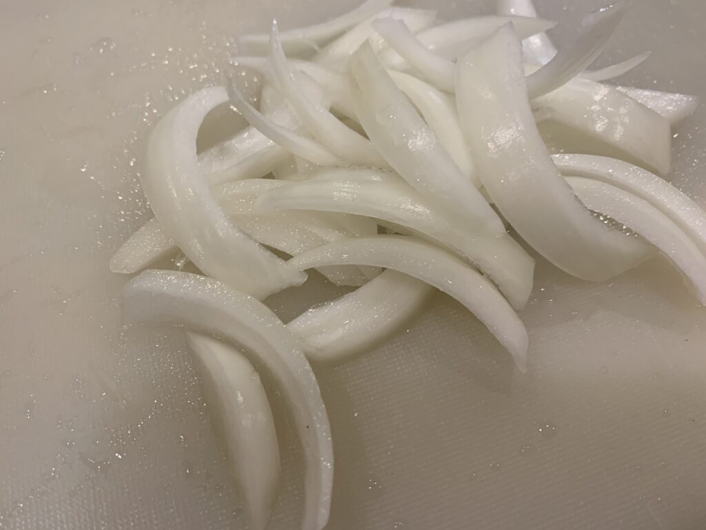 タマネギも切ろう。