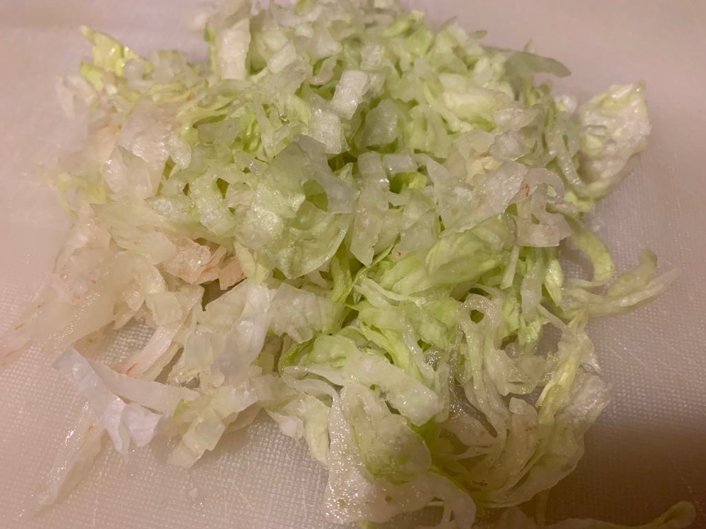 レタスを千切りにしてオムレツに巻く、ただそれだけのこと。