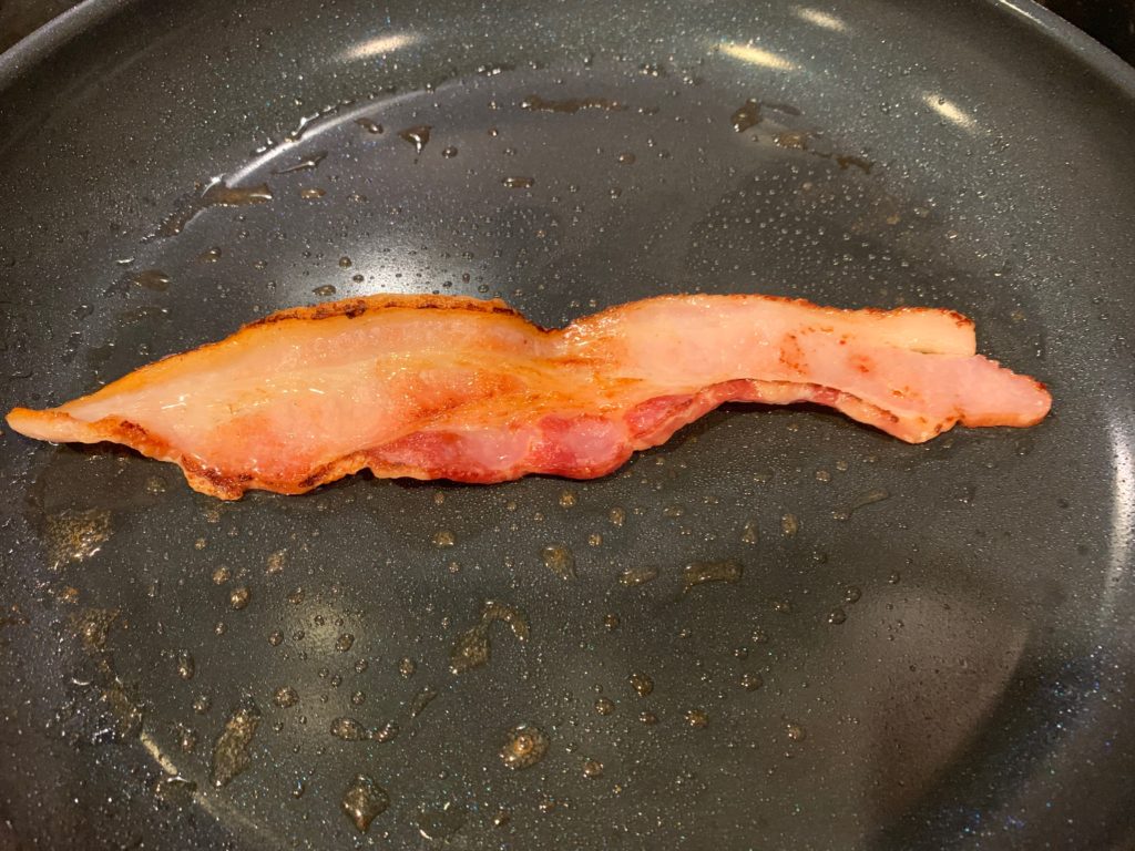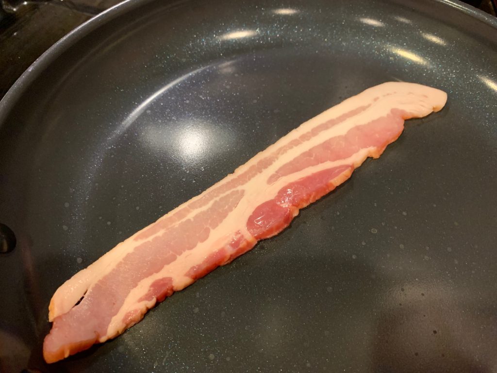 今までベーコンを入れたことなど無かったが、今日は1枚ぶち込んでみた。