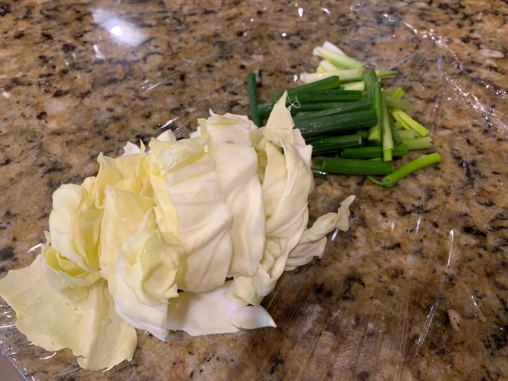 野菜は何でも良いんだけど、冷蔵庫で高齢化していたネギとキャベツを切った。