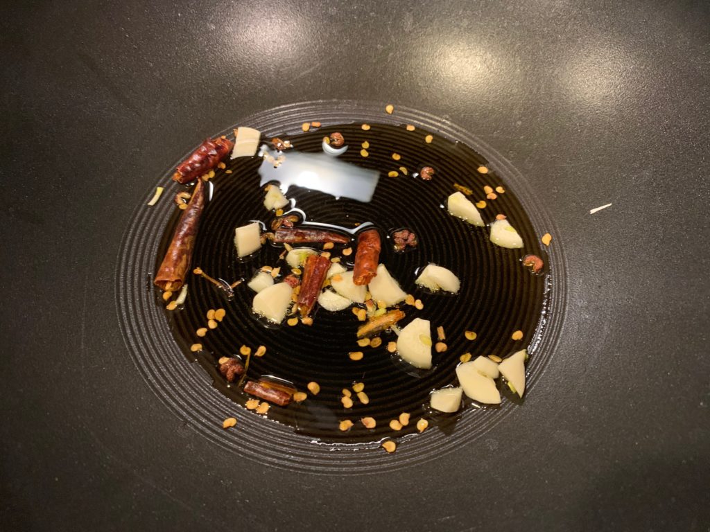 ニンニク、唐辛子、花椒。いつもの麻婆のやつ。