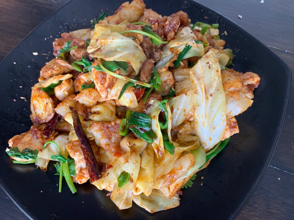 辛い炒めもの。アッツアツの生野菜に関してはこちら。