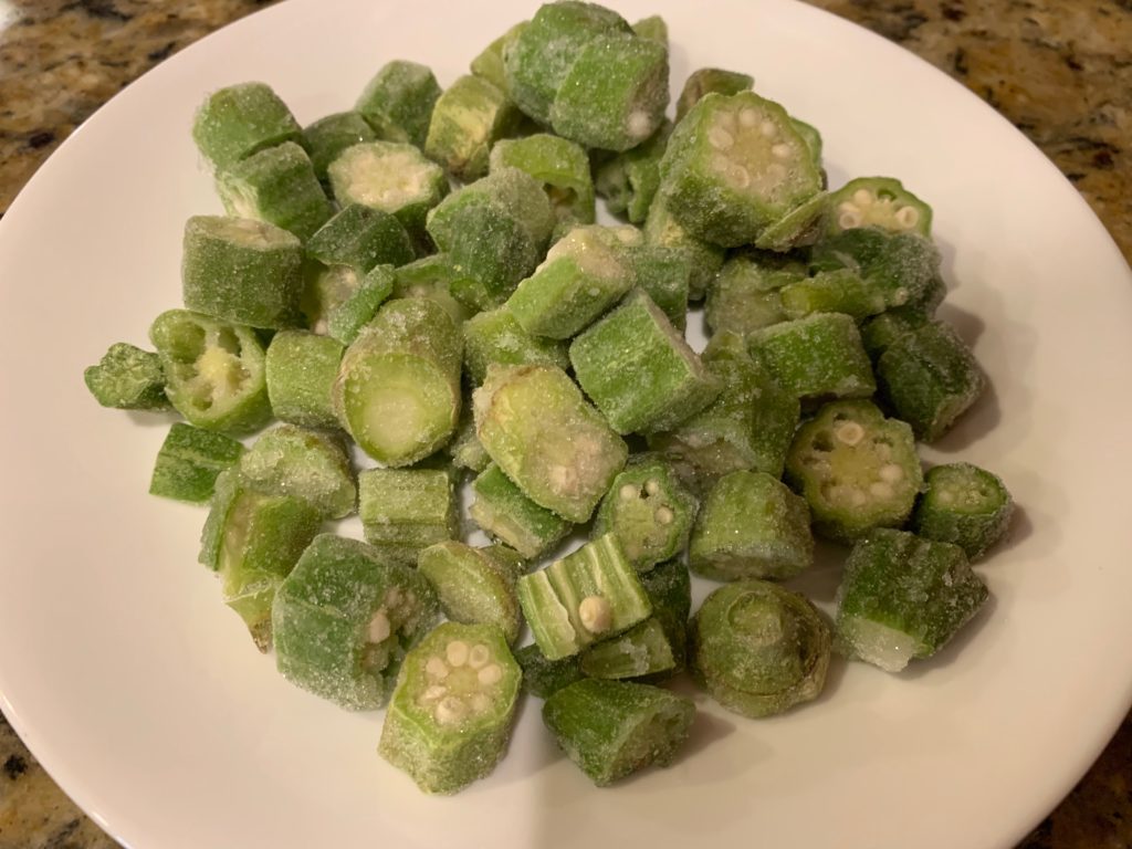 冷凍庫から取り出したばかりの新鮮な冷凍オクラ!