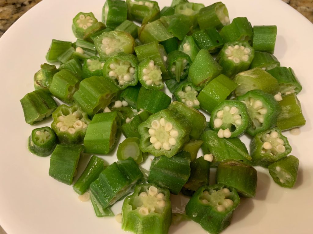 オックラ。日本語だと思ってたとかベタな話は今いいです。ちょうどいい大きさに切ってある。