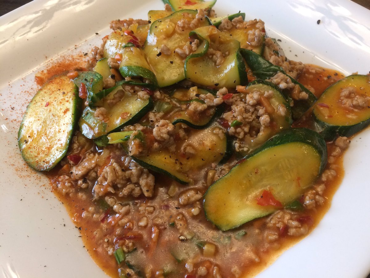 挽肉は野菜に火が通ってから。牛肉を使うことが多いけど、ターキーのことも。