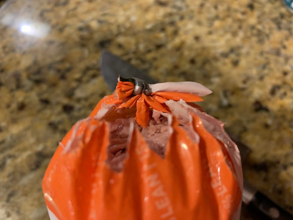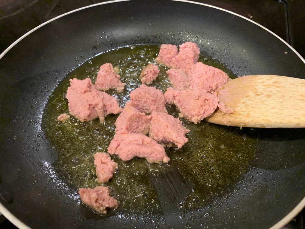塩たっぷりで茹で始めたらお肉を。ビーフとかでもきっと美味しいと思うが、今日はターキーにした。今日はこの形状のが冷蔵庫に。