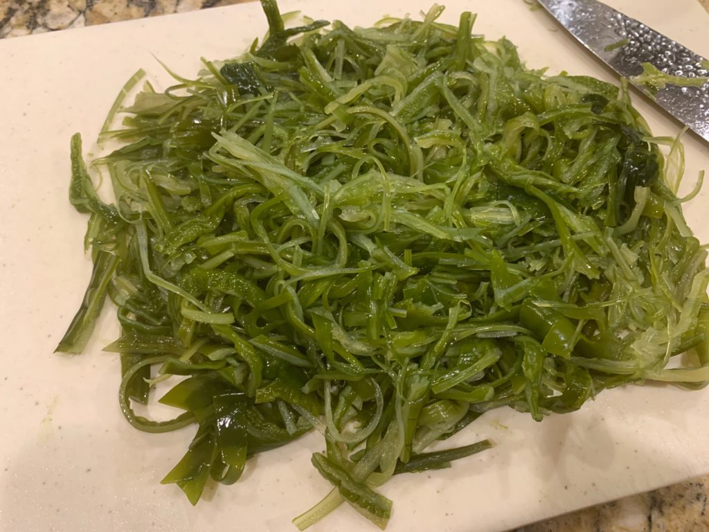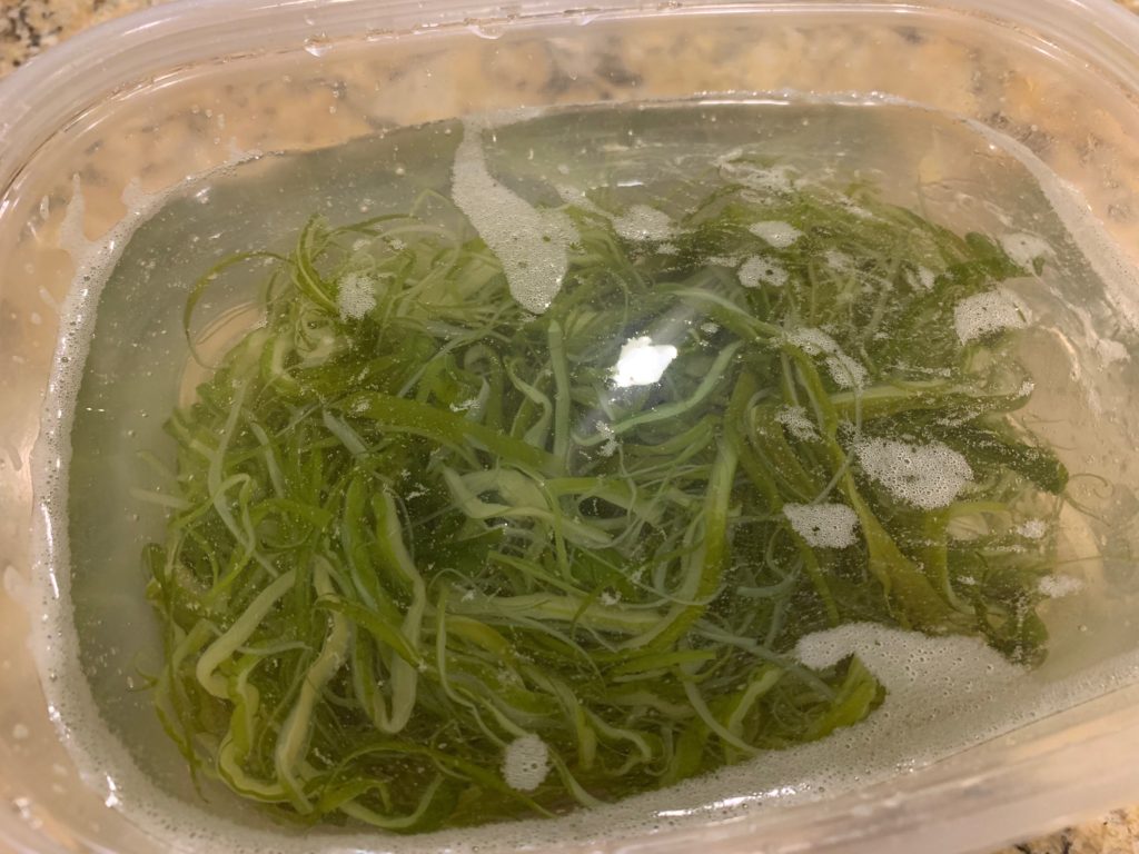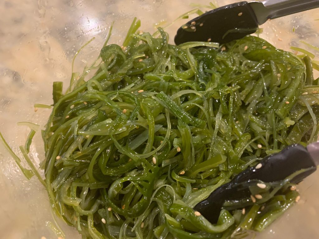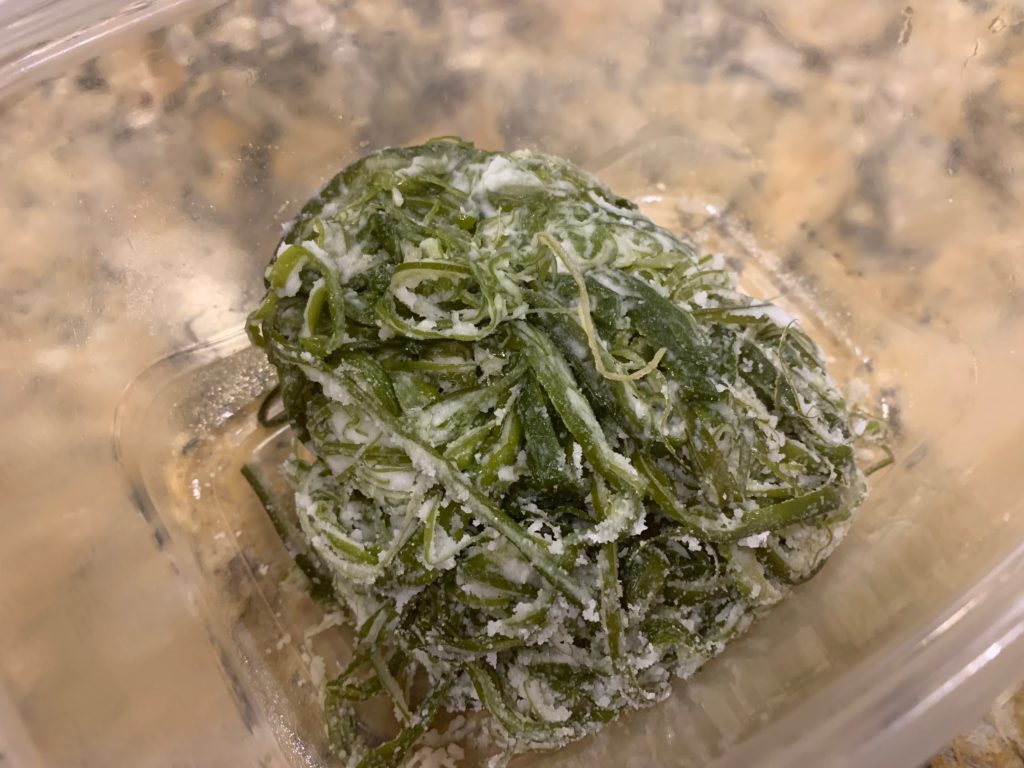 アジア食品置いてる店の冷蔵コーナーで確保。$2とかで売ってる。所詮藻であるとはいえ、本格的に海のいい匂いが食える割には激安で間違いない。