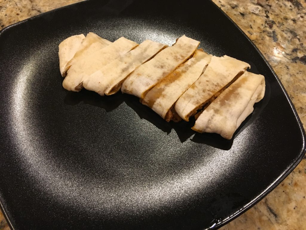 レンチンしてから切ってしまおう。皿の真ん中に置かないのはポイント。真ん中に集めるだけで、盛り付けってダサくなる気がします(当社比)。