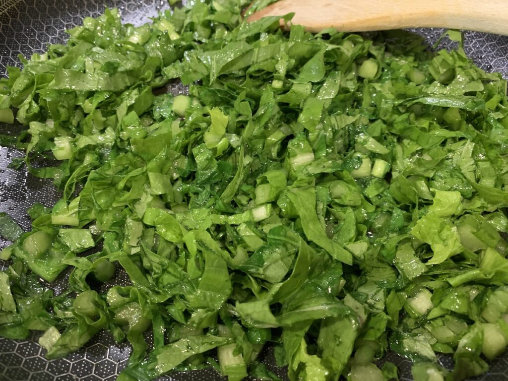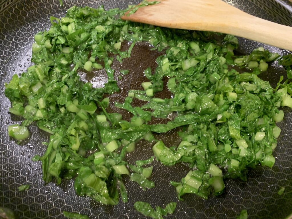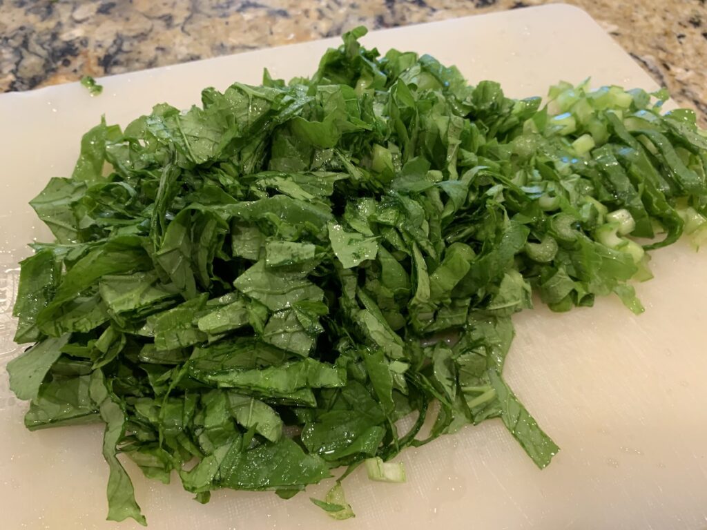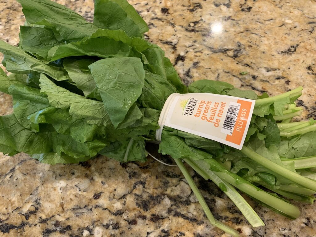 今回は Turnip Green を使用。メリカのスーパーなら売ってるはず。要するに、大根の葉。