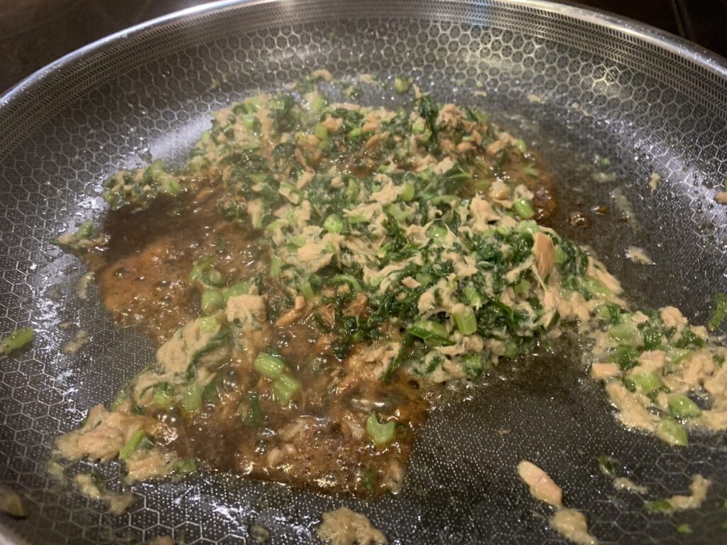水気がなくなるまでもう一度頑張って、本つゆ。