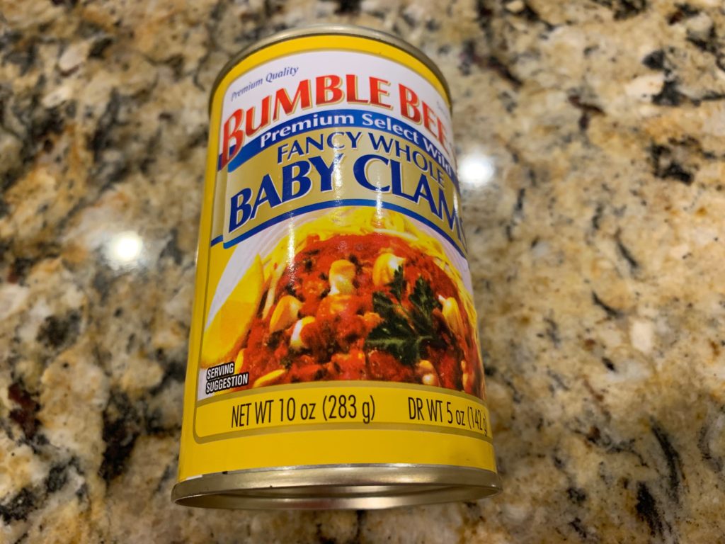 貝缶。貝がたっぷりはいって安い。$3くらいだったと思う。しかも貝を茹でた汁まで入っていてサイコー。