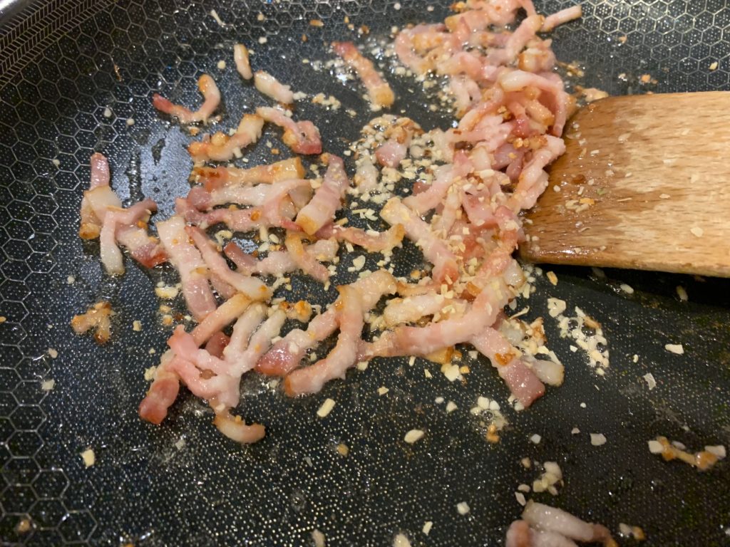 炒めて乾燥オニオン粒足しておいた。生のを切ればいいんだけど、めんどくさかったので。便利。ちなみに、Mドナルドのバーガーにはこれを水で戻したやつが入っている。