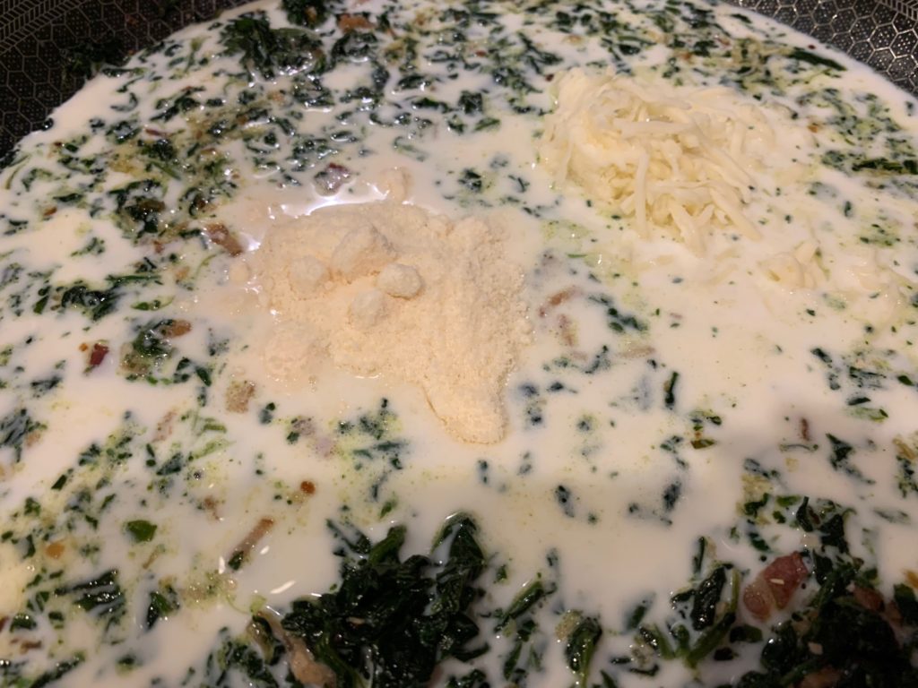 牛乳とチーズ。チーズはモツァレラもなんとなく足したけど、安メザンさえぶっこんどけば問題なし。