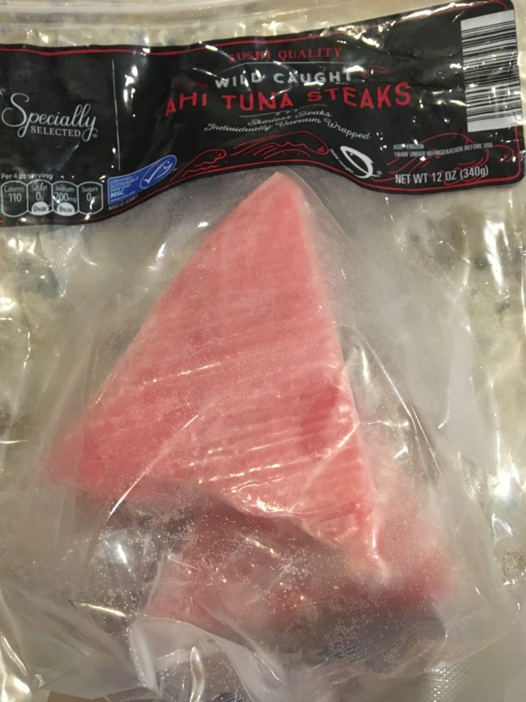 “Sushi-Quality” とある。しかし、裏面には加熱して食べるように書いてある。基本的に生の魚や肉を「生のまま食べて安全」と謳われることはなく、食べるのは勝手だがなんかあったら消費者の責任、という事だ。一方で生で食べてもきっと大丈夫にはしてあると言う事。だからと言って、絶対に大丈夫とは言えない。そういうことだ。
