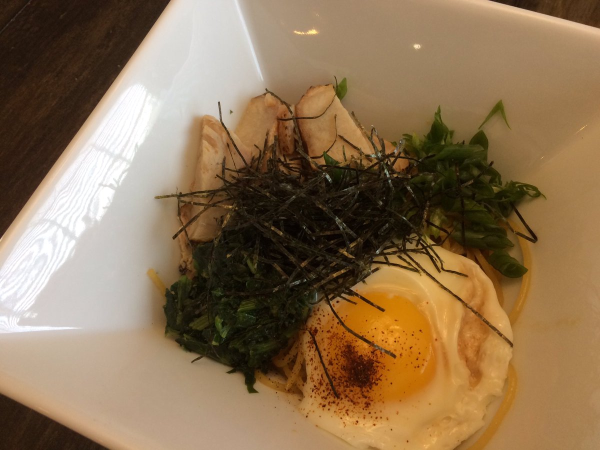 別に言われなくても盛り付けるとは思うけど、他に工程が無くて、あとは食べるだけ。言われなくても分かるかもだけど、チャーシューとか卵あるとデラックス化。ネギはあったほうが良いでしょう。ノリとかも。ちなみに上の写真のはポーチドエッグ。