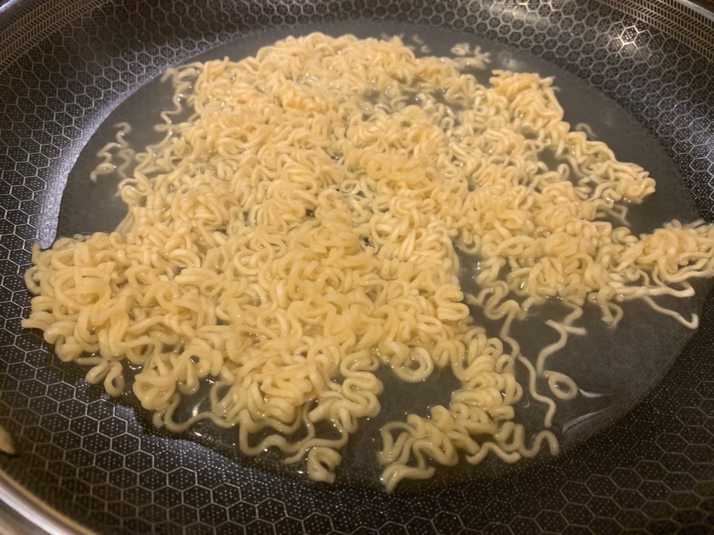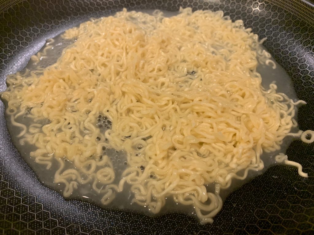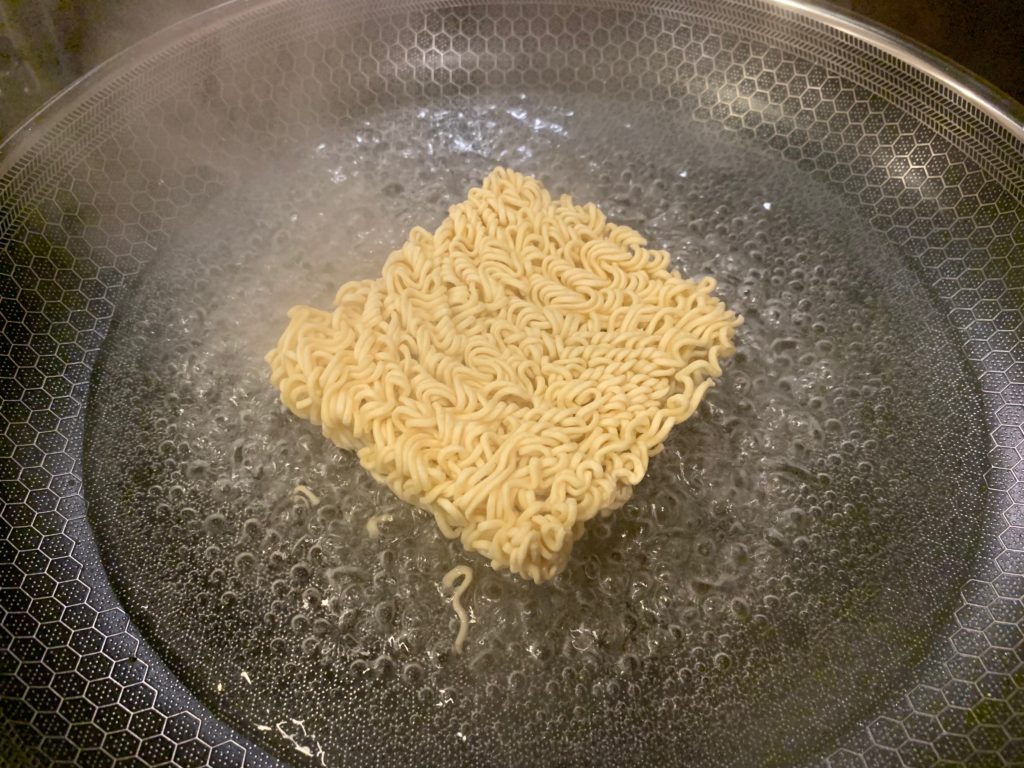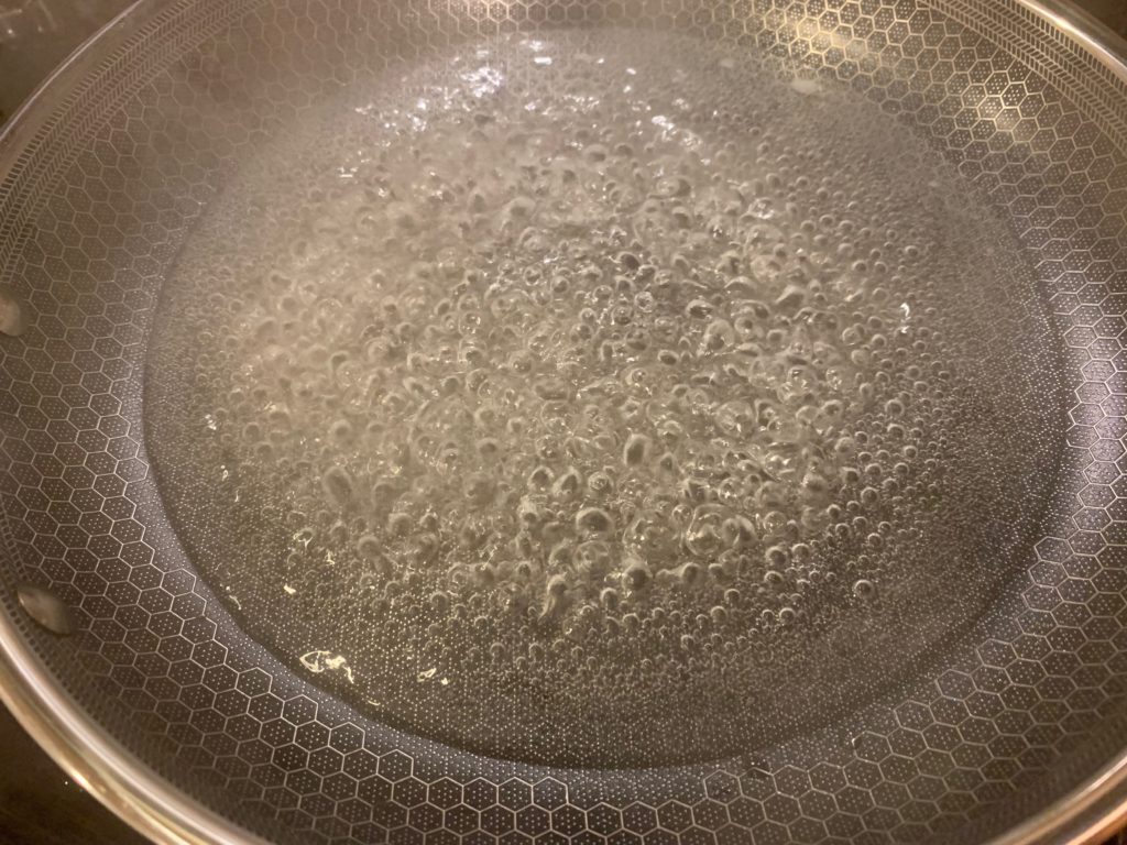 フライパンに水300ml沸かす。