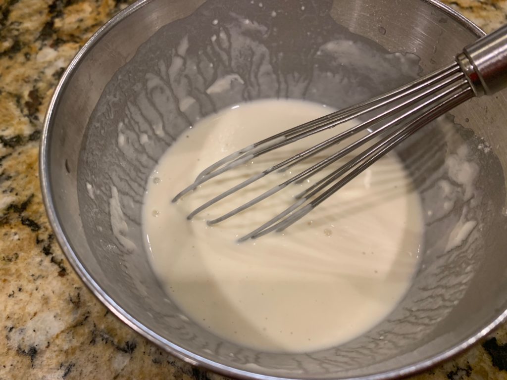 All-purpose flour を水に溶く。しっかりこだわって目分量。